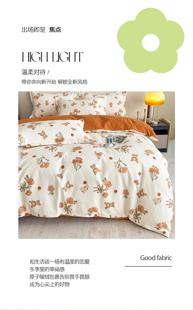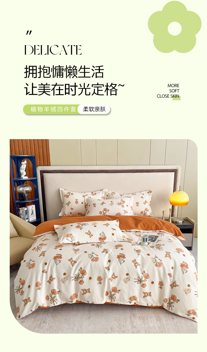 商品名称:棠颂 2023新款高克重加厚植物羊绒斜纹磨毛四件套 洛神