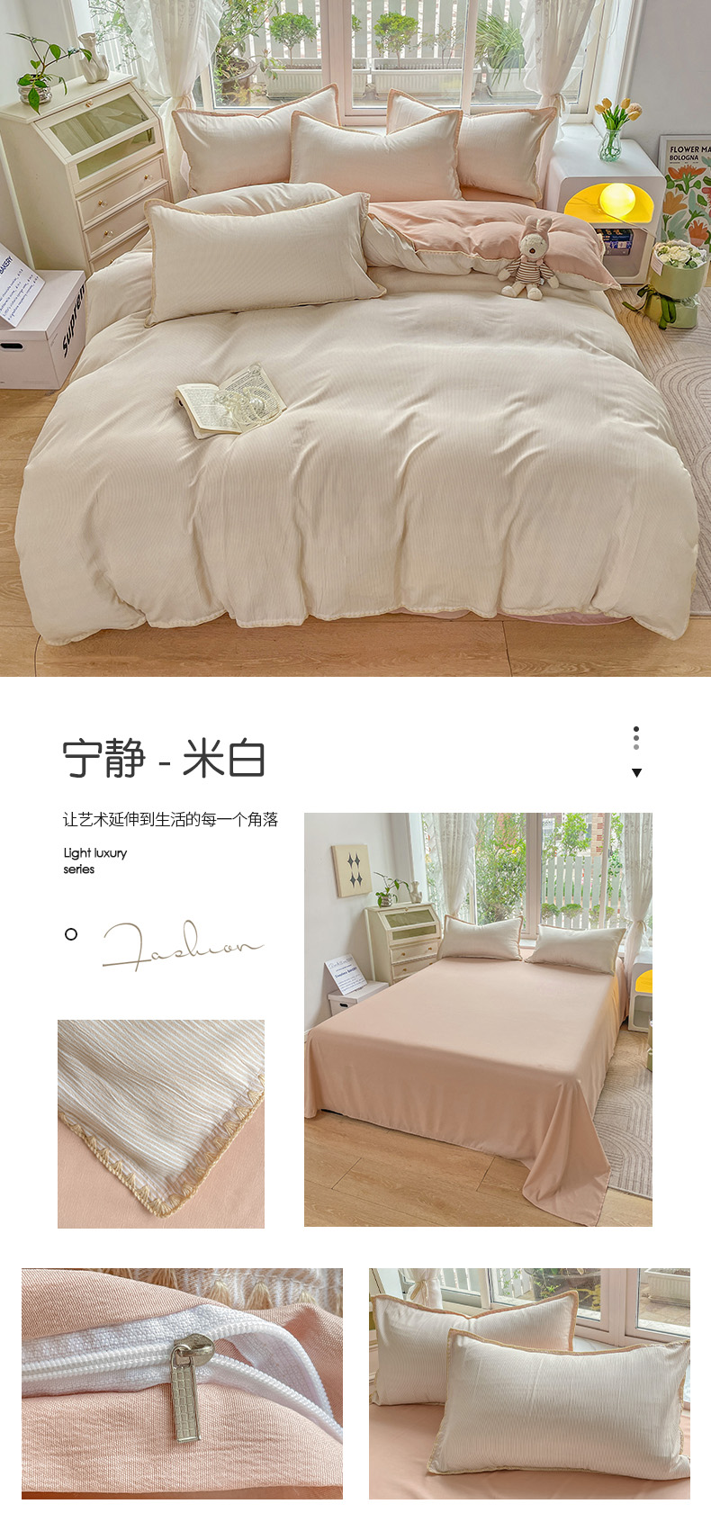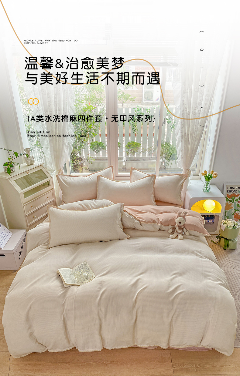 当前位置: 91家纺网 > 商品网购 > 床品套件 > 四件套 > 水洗棉四件套 > 无印风贝壳绣双层纱棉麻水洗四件套直播爆款 宁静-米白