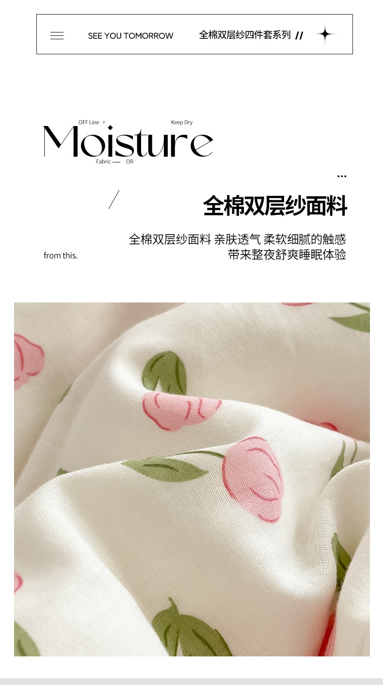 商品名称:川悦生活 2023新款全棉双层纱印花四件套 蜜甜-粉