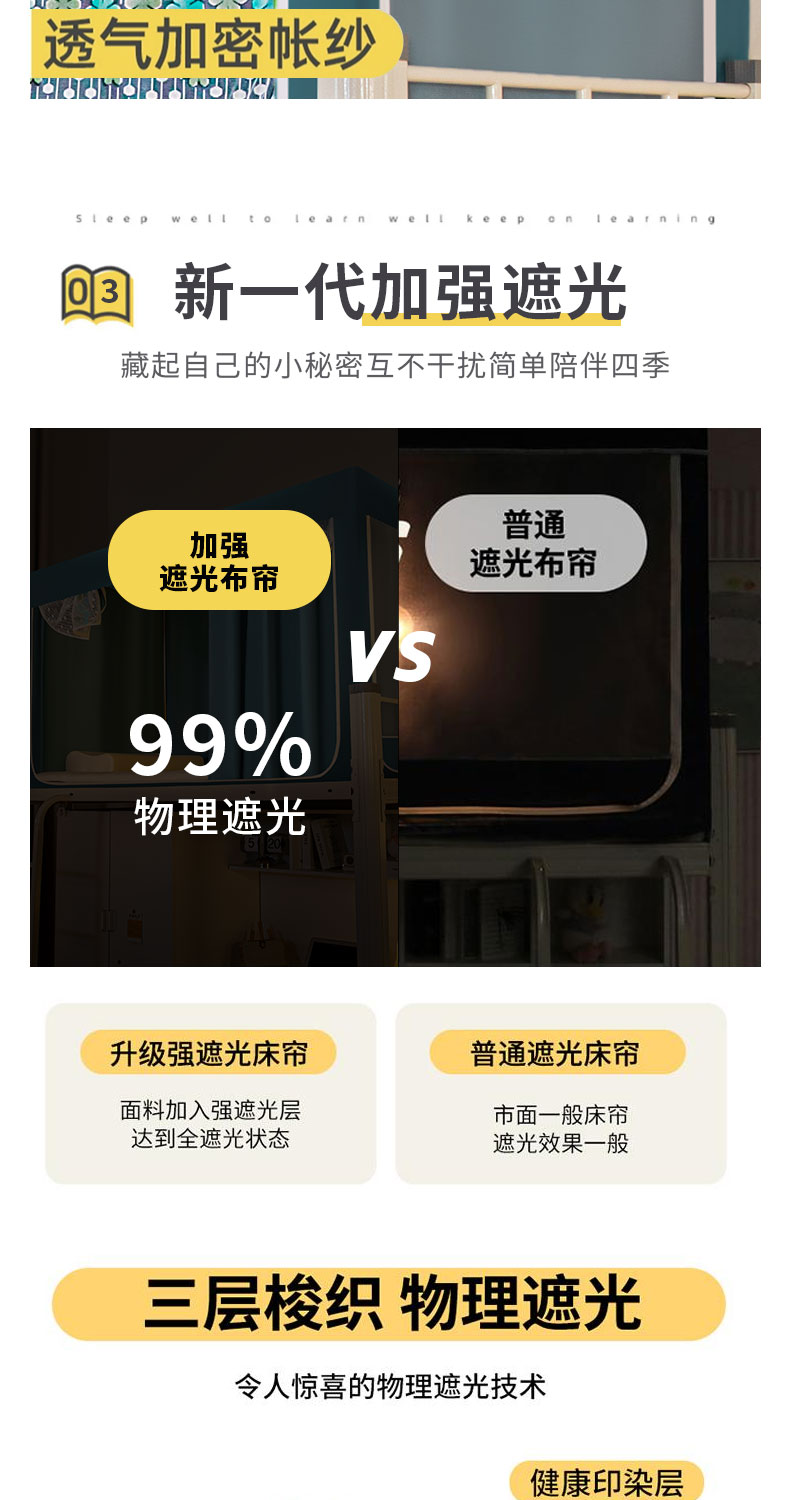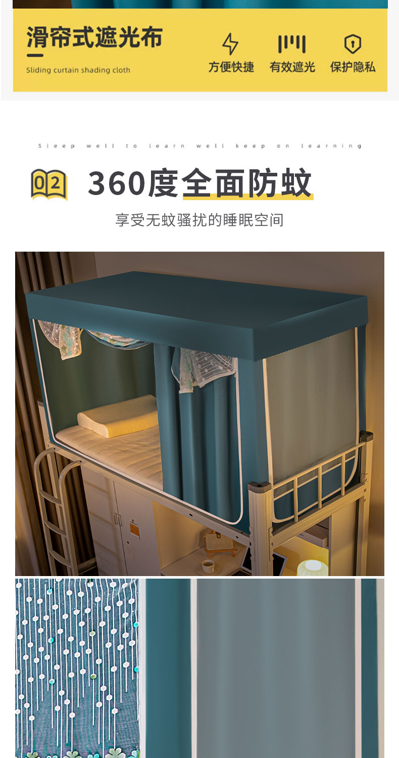 下铺长190宽90高90 三片布帘 五面遮光 烤漆支架