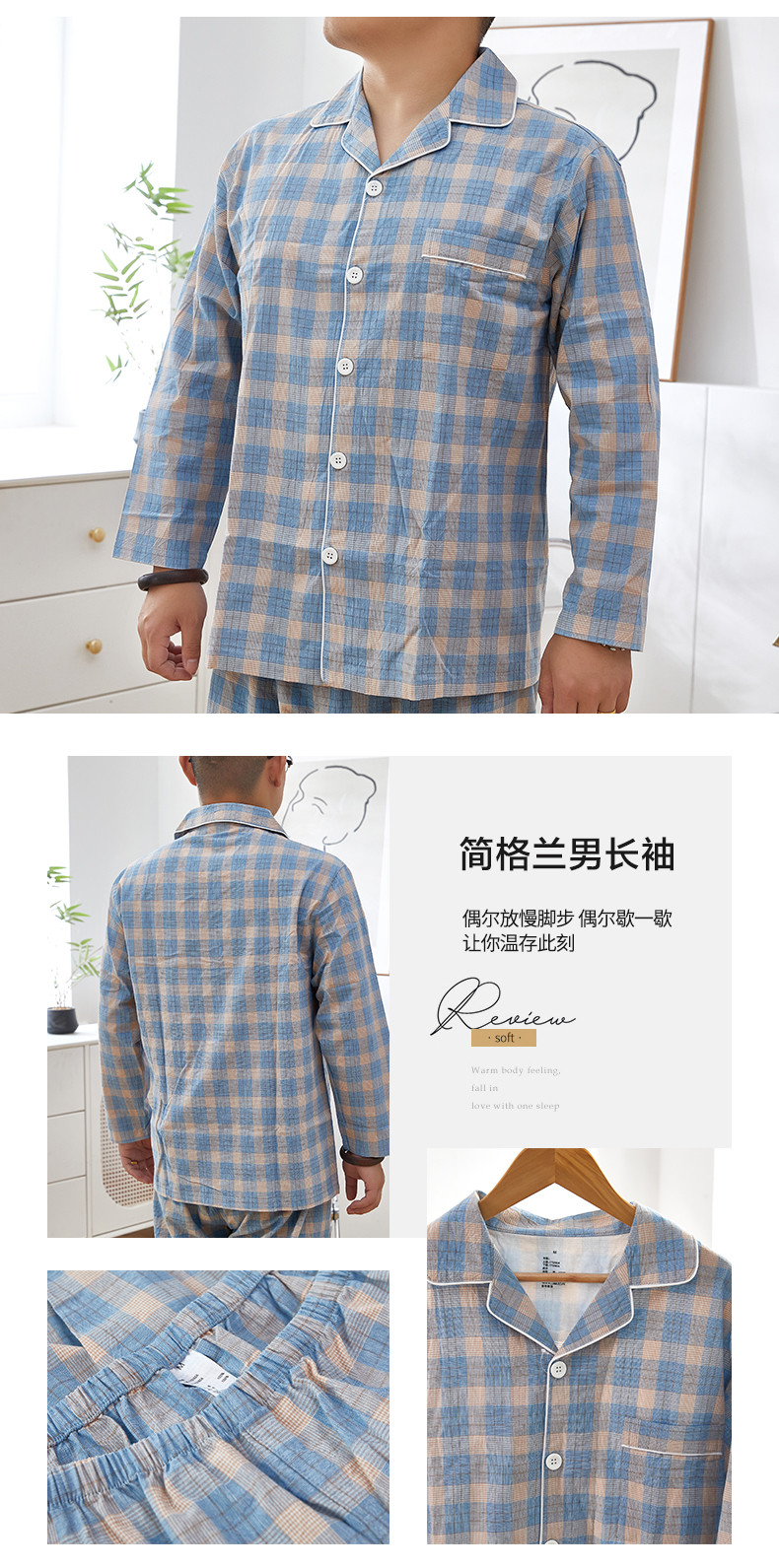 商品名称:玖弘 2023新款水洗棉长袖家居服 简格兰男长袖