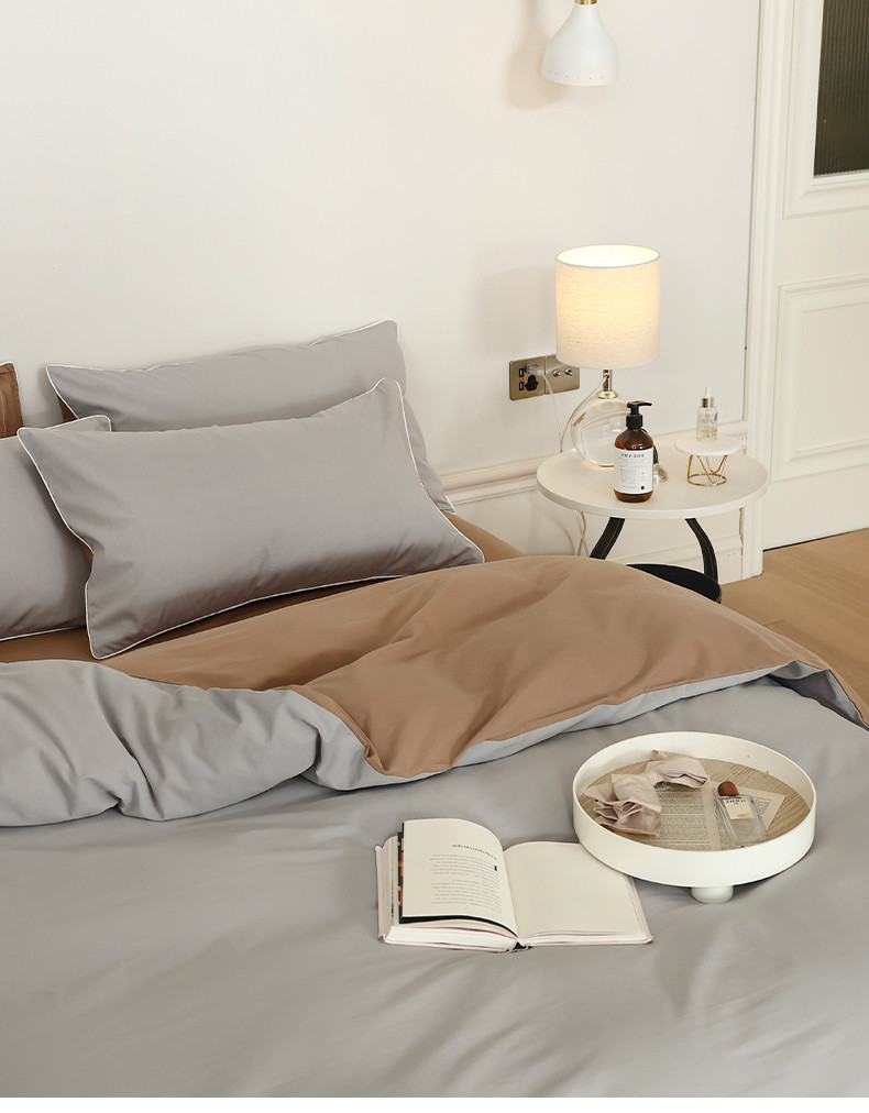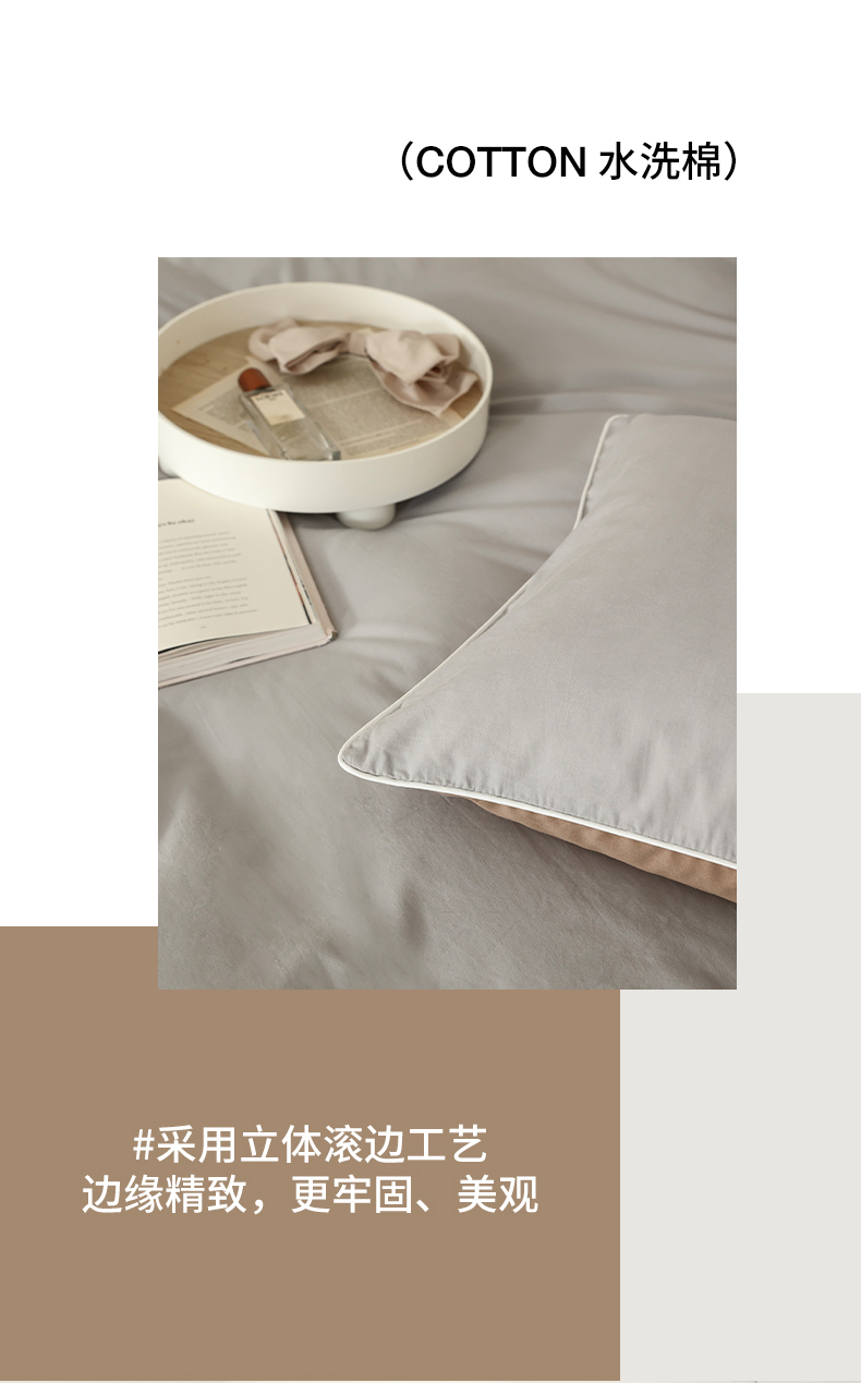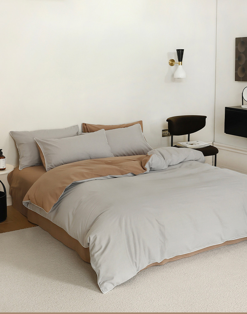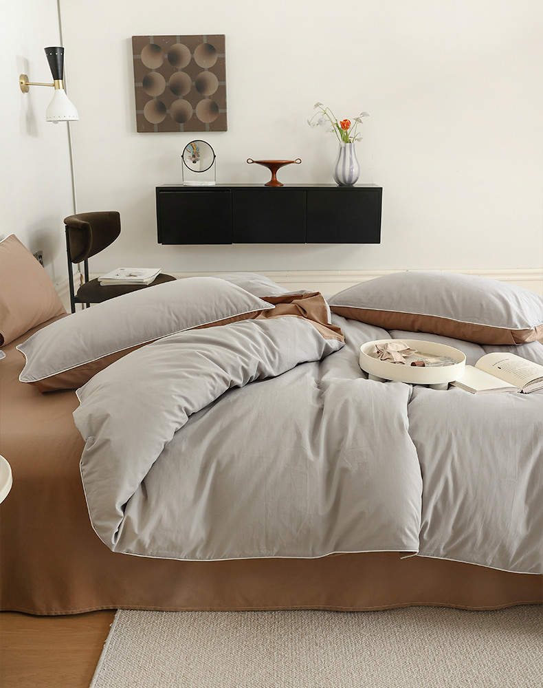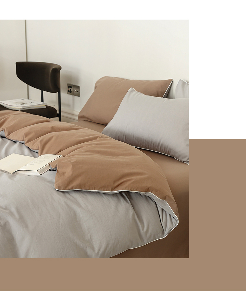 当前位置: 91家纺网 > 商品网购 > 床品套件 > 四件套 > 全棉普通四件套 > 万盛家纺 2025新款全棉水洗棉拼色四件套 灰拼浅咖