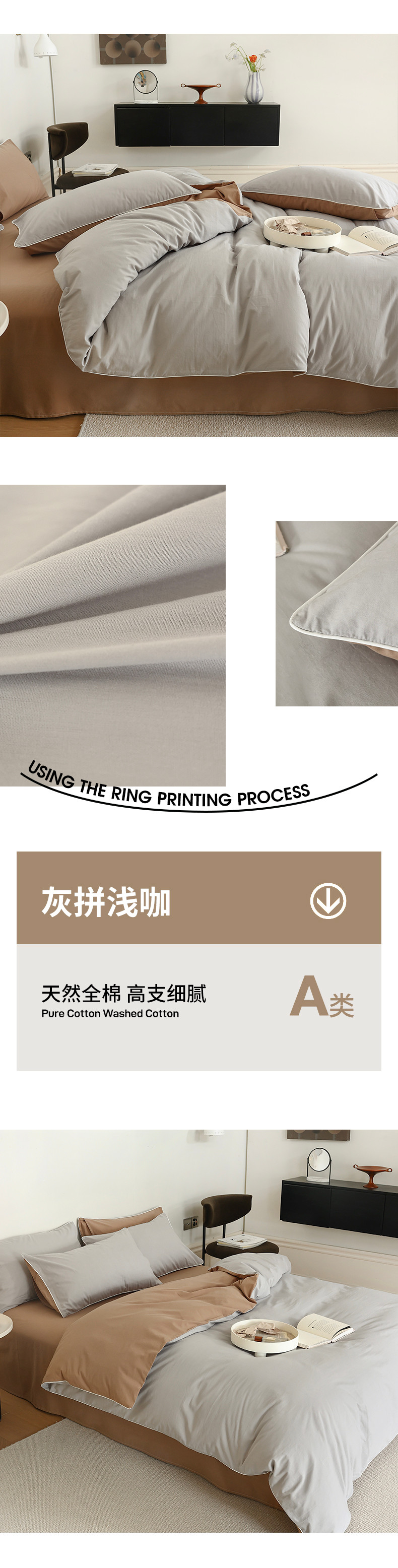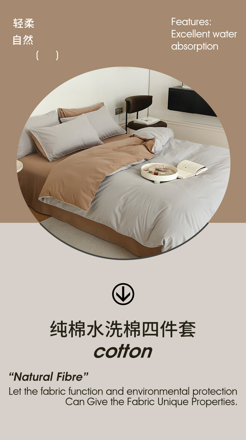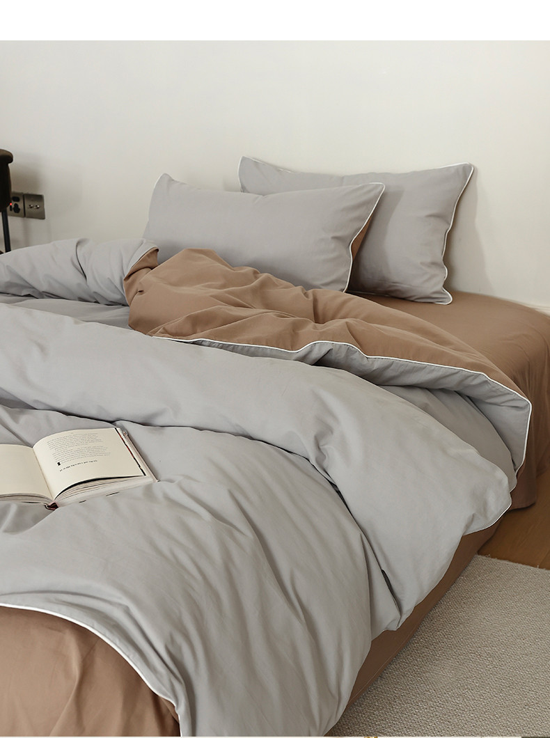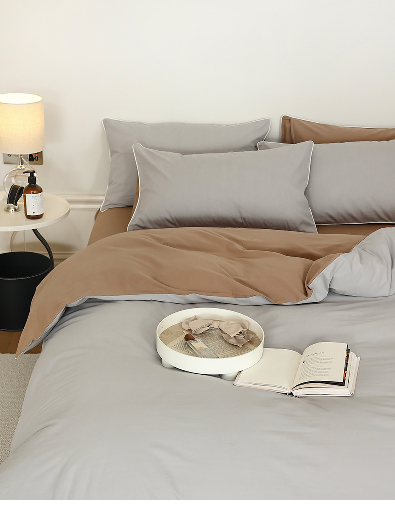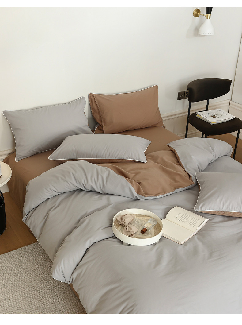 当前位置: 91家纺网 > 商品网购 > 床品套件 > 四件套 > 全棉普通四件套 > 万盛家纺 2025新款全棉水洗棉拼色四件套 灰拼浅咖