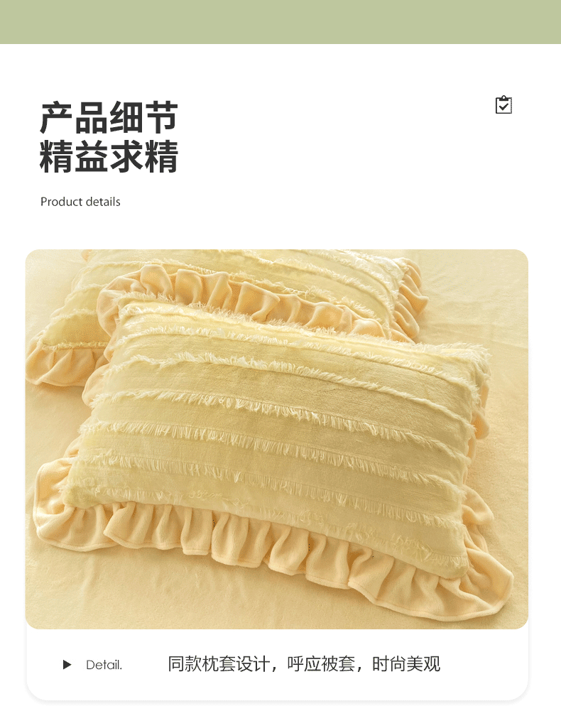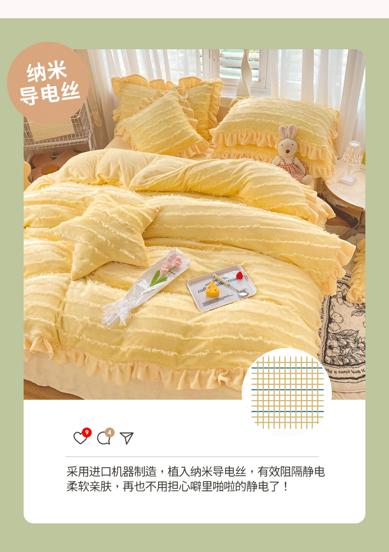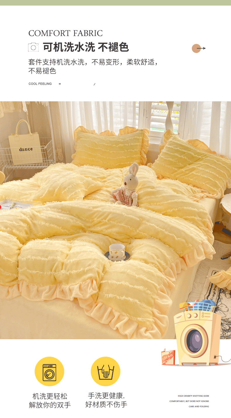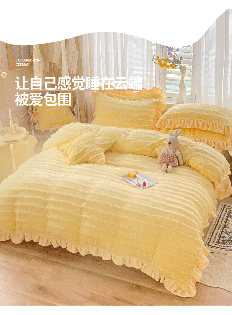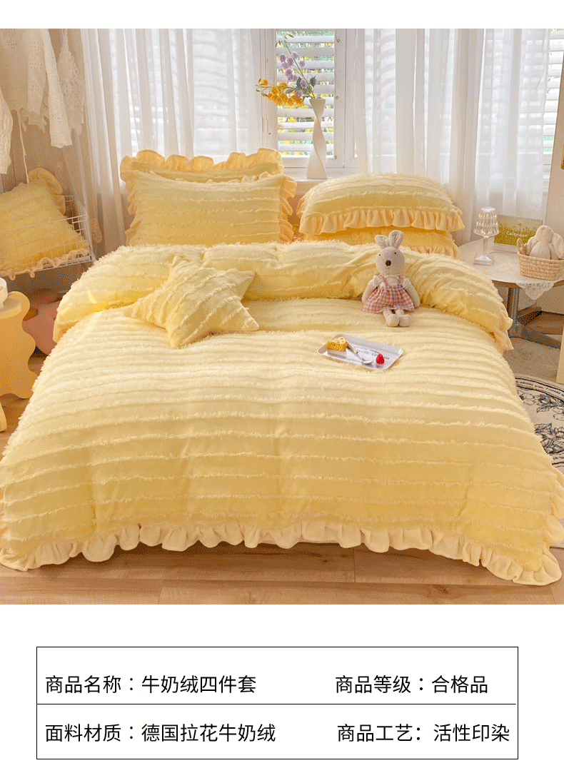 欧冠 2023新款高端牛奶绒提花四件套 柠檬黄