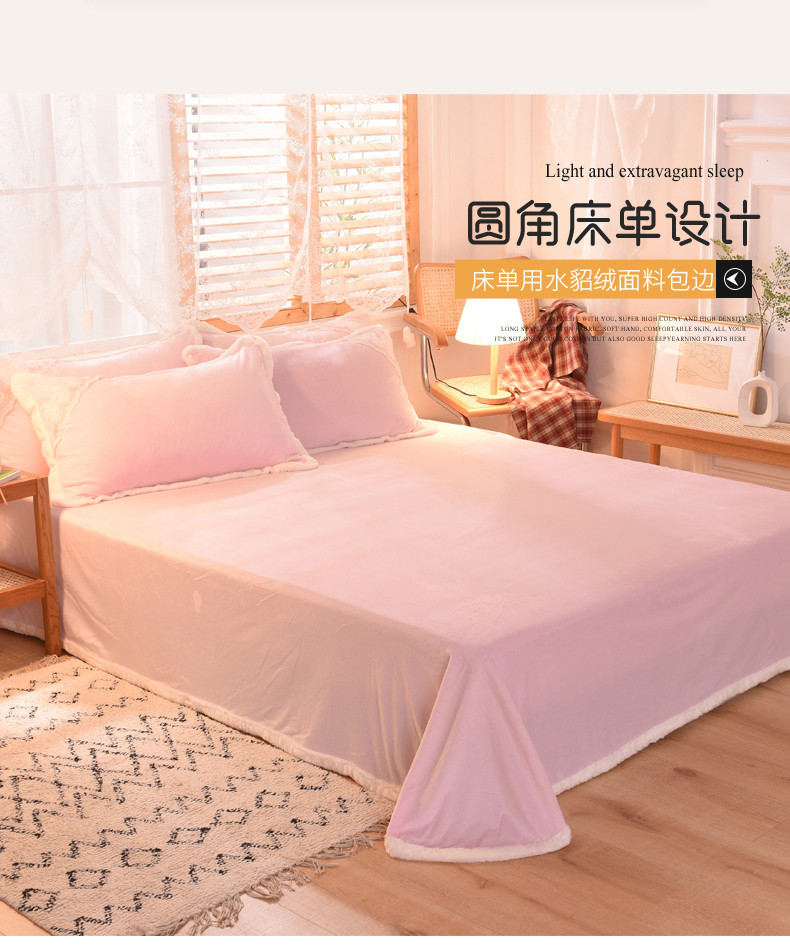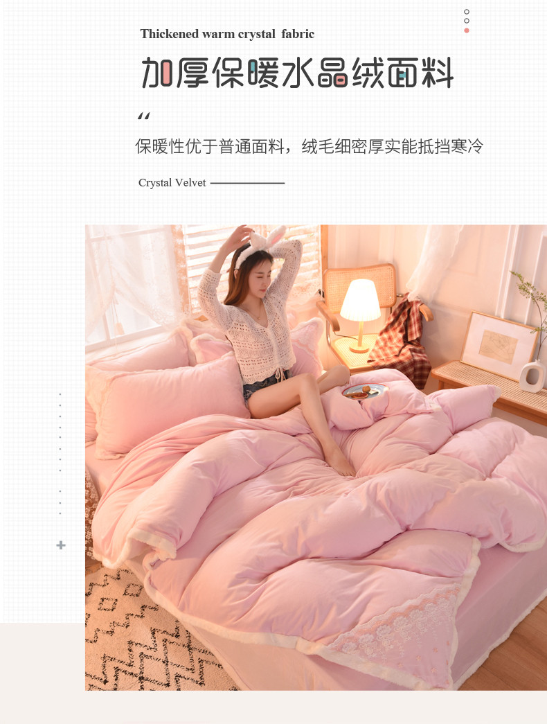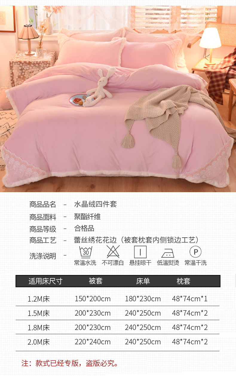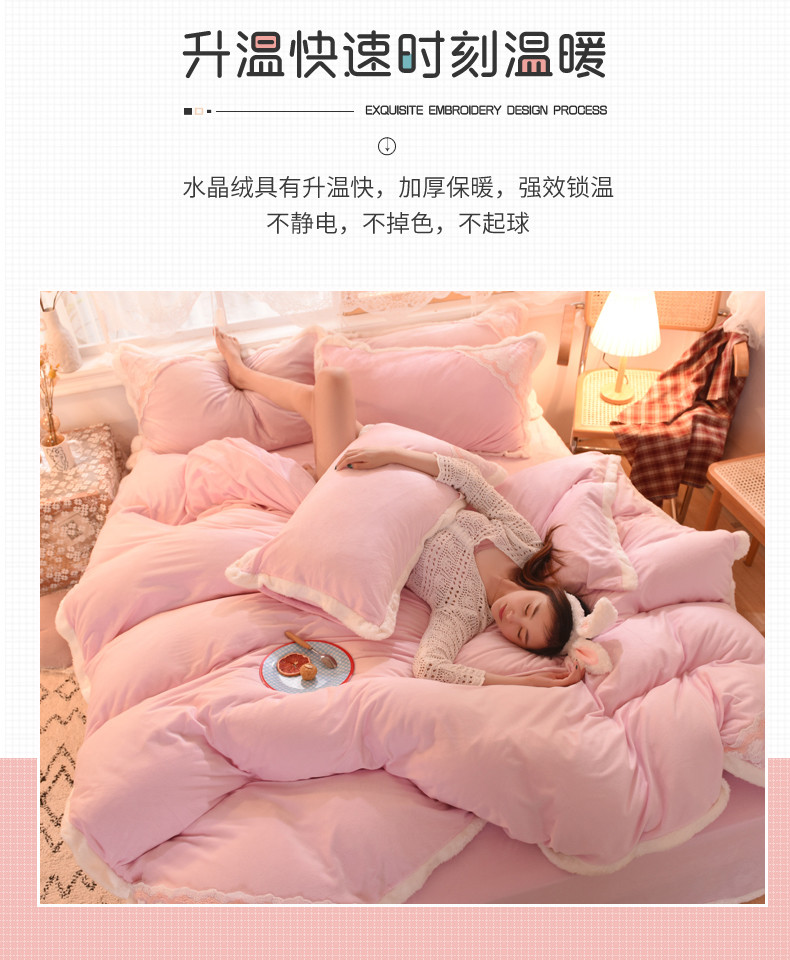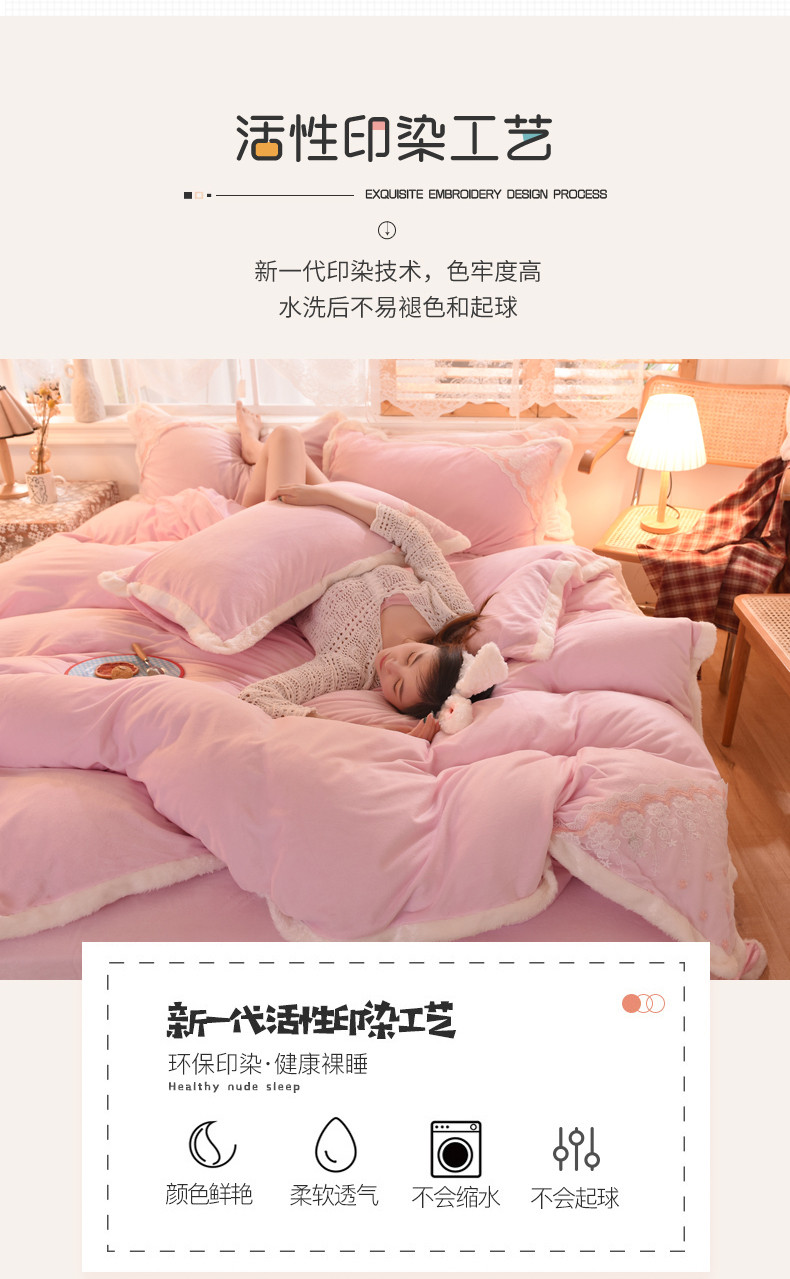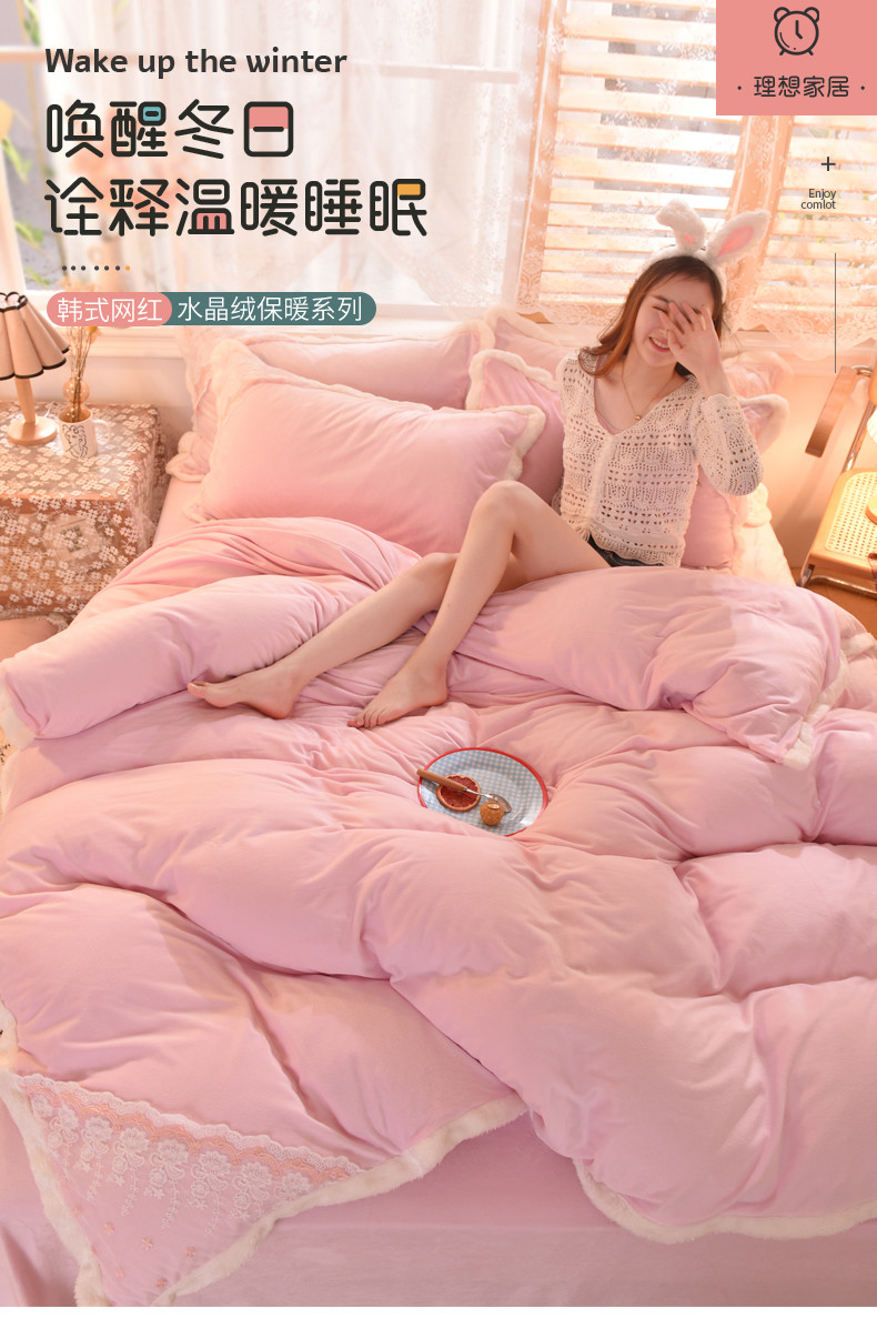 商品名称:丝印良品 2023新款韩版公主牛奶绒四件套 浅粉
