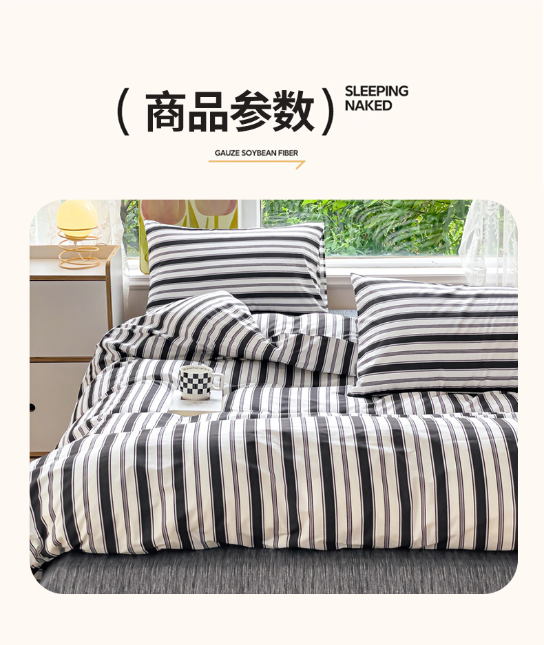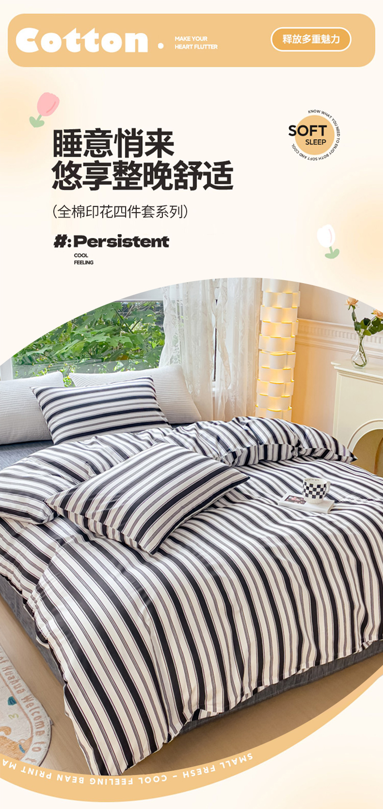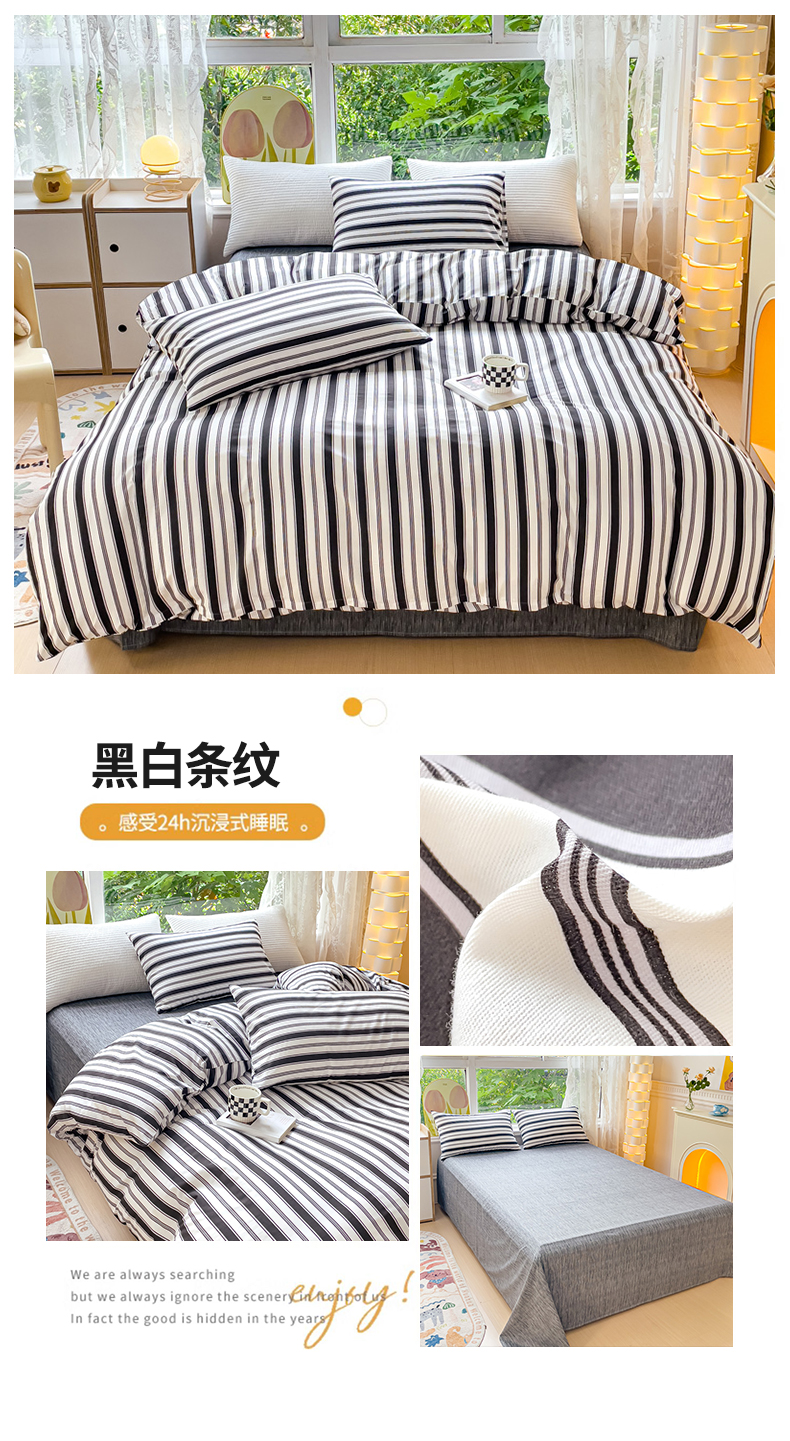 当前位置: 91家纺网 > 商品网购 > 床品套件 > 四件套 > 全棉普通四件套 > 珺柔 2023新款13070全棉印花四件套 黑白条纹