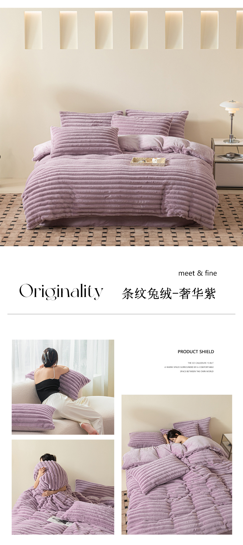 商品名称:逸尚阁 2024秋冬新款高克重条纹兔兔绒四件套系列 条纹兔绒-奢华紫