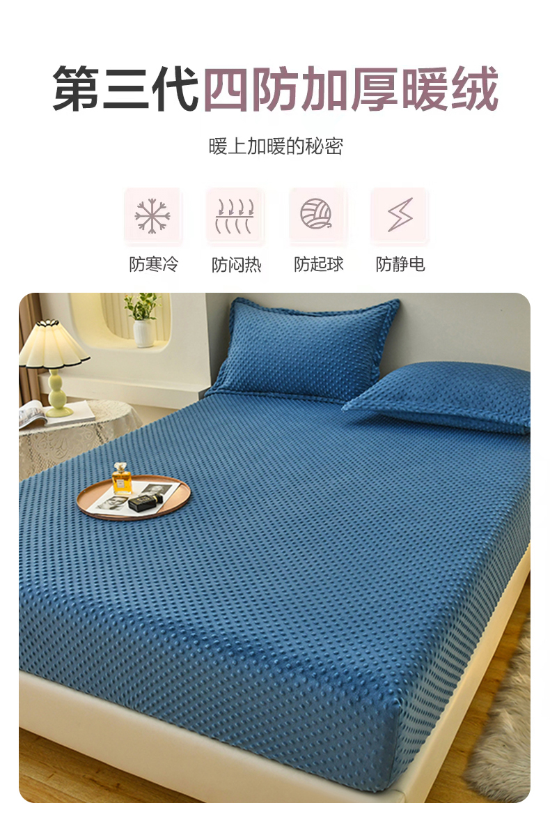 • 91家纺网 家纺一手货源 找家纺 家贝爱2023新款加厚宝宝绒暖豆豆床笠床罩 豆豆绒-宾利蓝