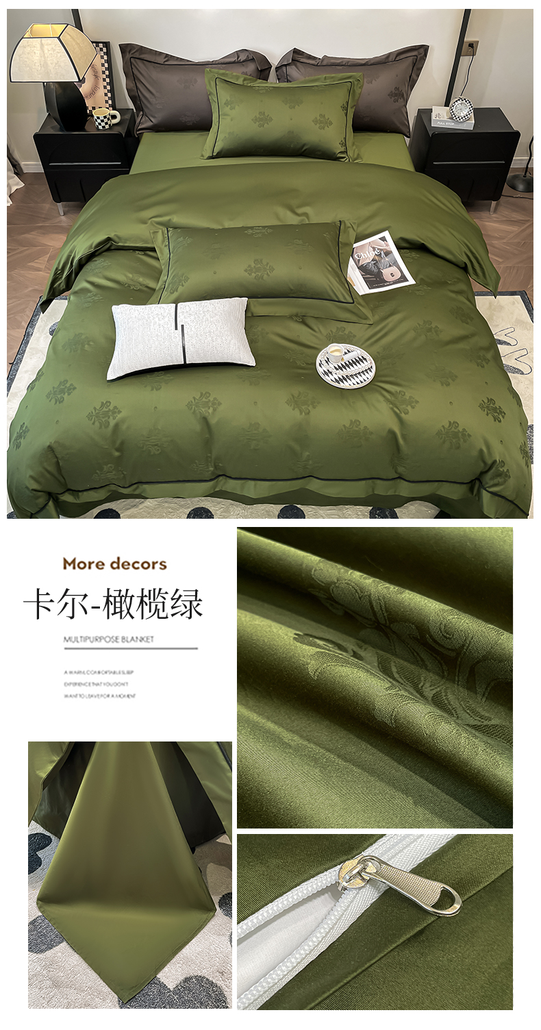 当前位置: 91家纺网 > 商品网购 > 床品套件 > 四件套 > 长绒棉四件套 > 慕色 2023新款A类100s长绒棉提花卡尔系列四件套 卡尔-橄榄绿