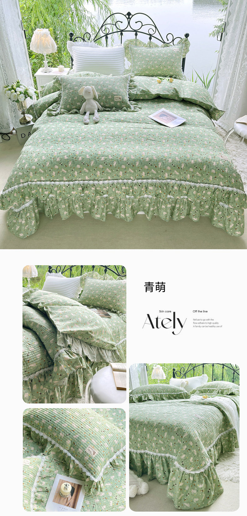 商品名称:菊上 2023新款茶歇法式系列全棉四件套 青萌