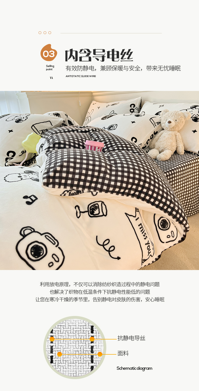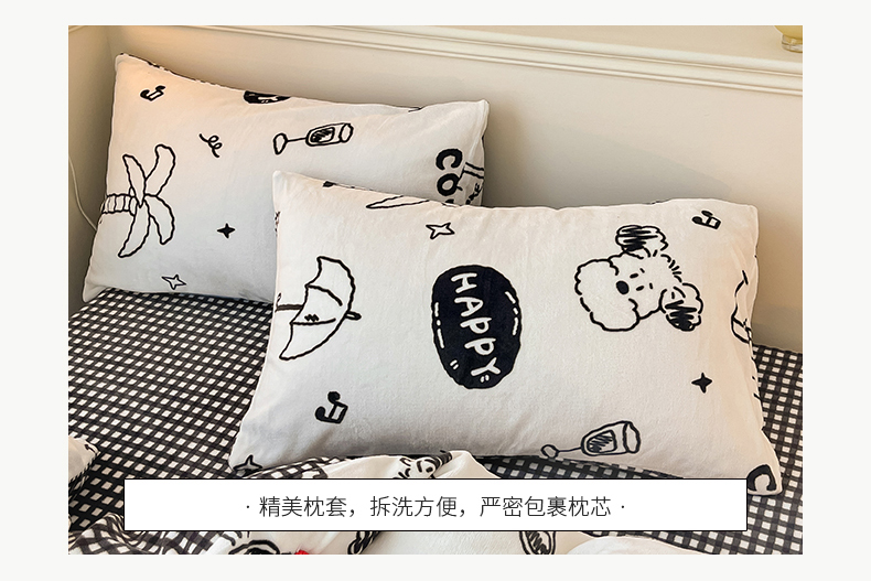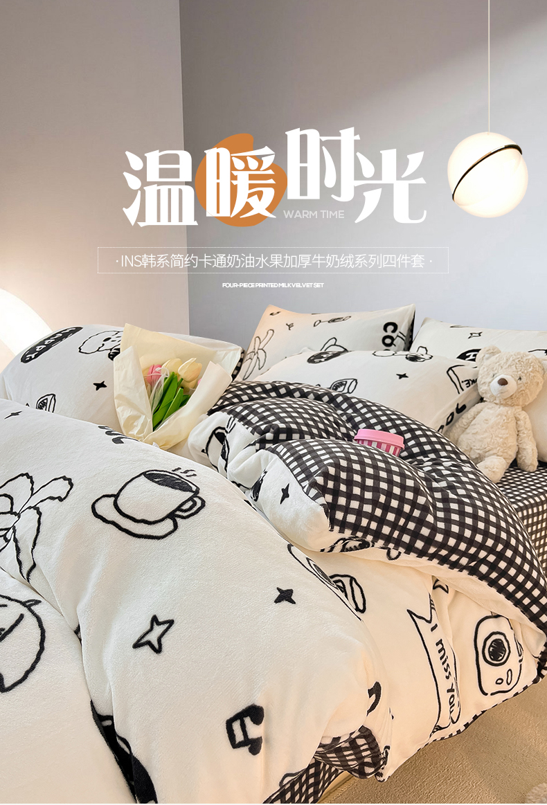 商品名称:桃子家居 2023新款ins韩系简约卡通奶油小清新加厚牛奶绒系列四件套 绒-假日