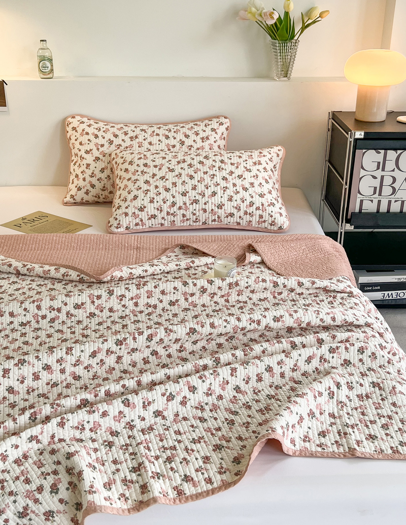 茉夕家纺 2023新款新疆棉花水洗床盖 花契粉