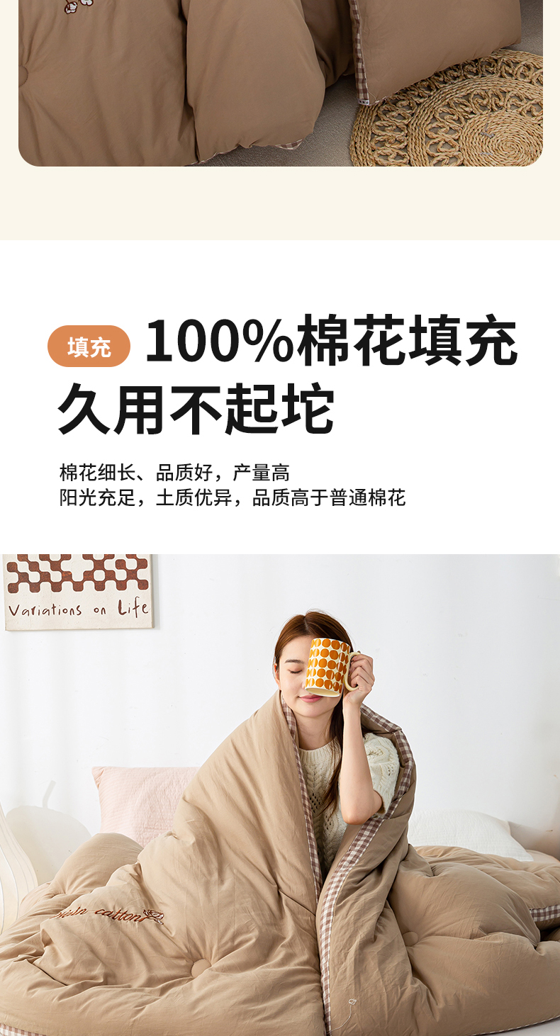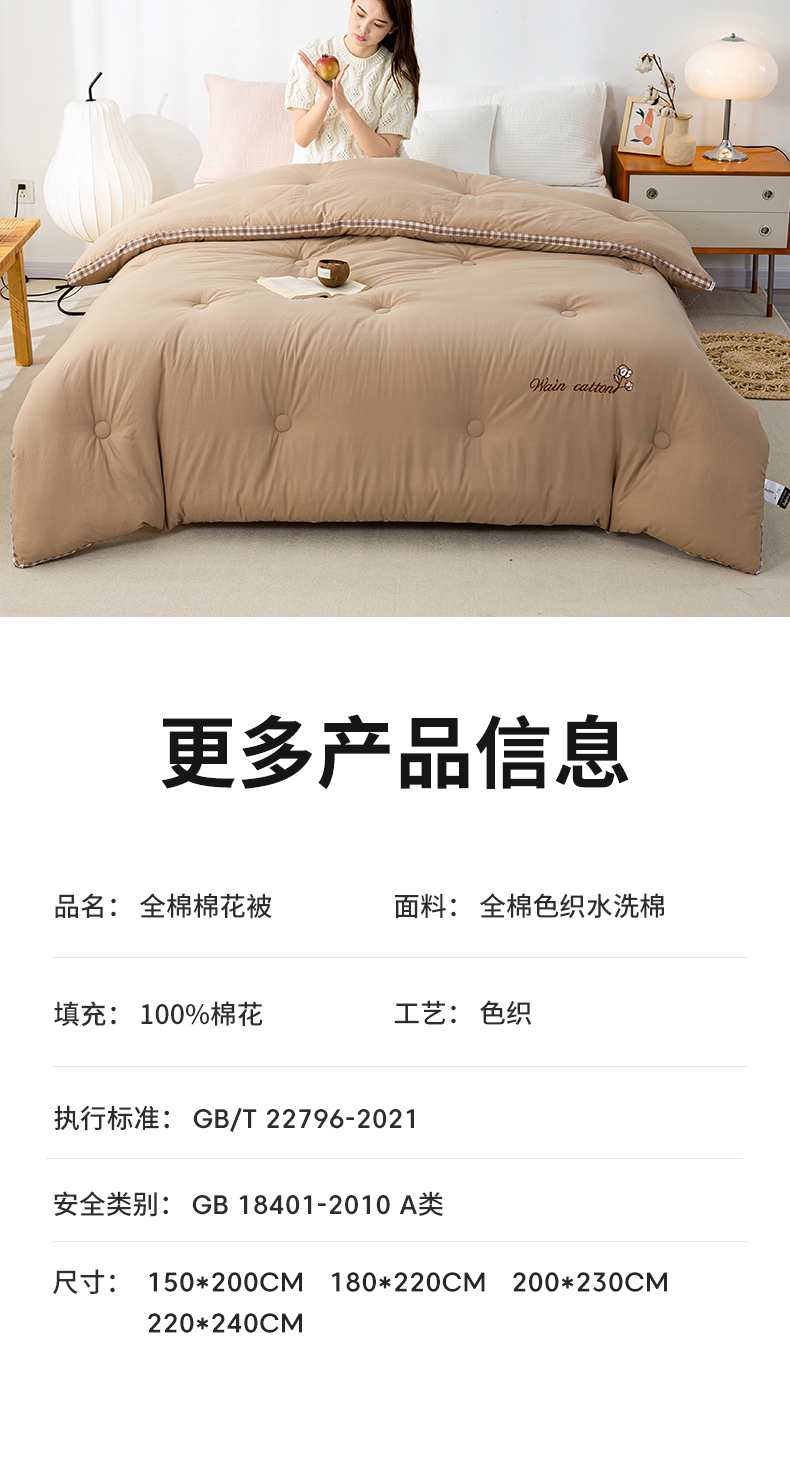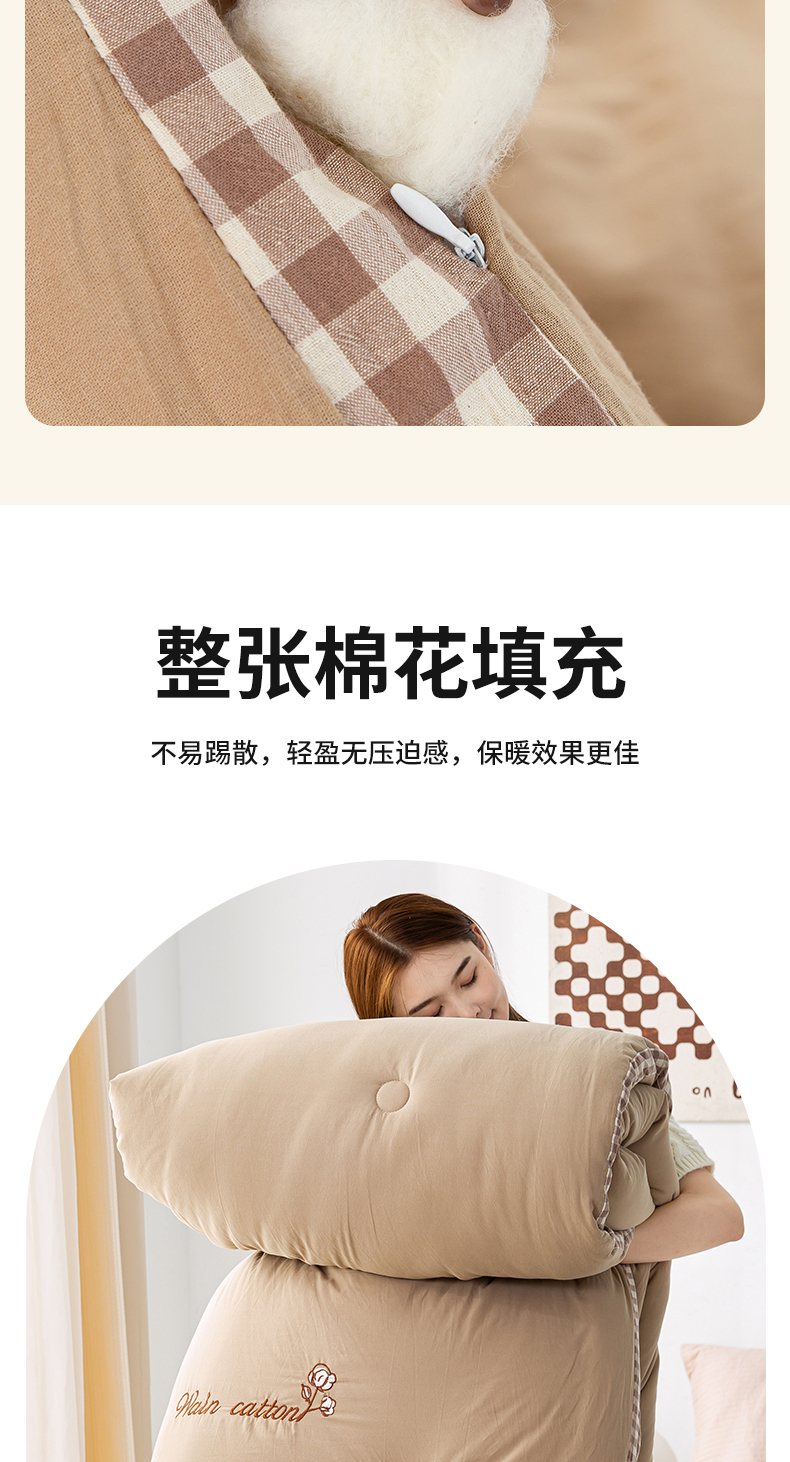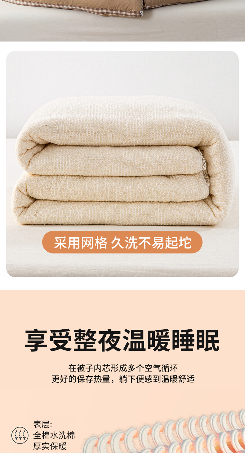 • 91家纺网 家纺一手货源 找家纺 鸣升 23新款棋盘格全棉花被色织水洗棉100%冬被被子 棋盘格-浅驼
