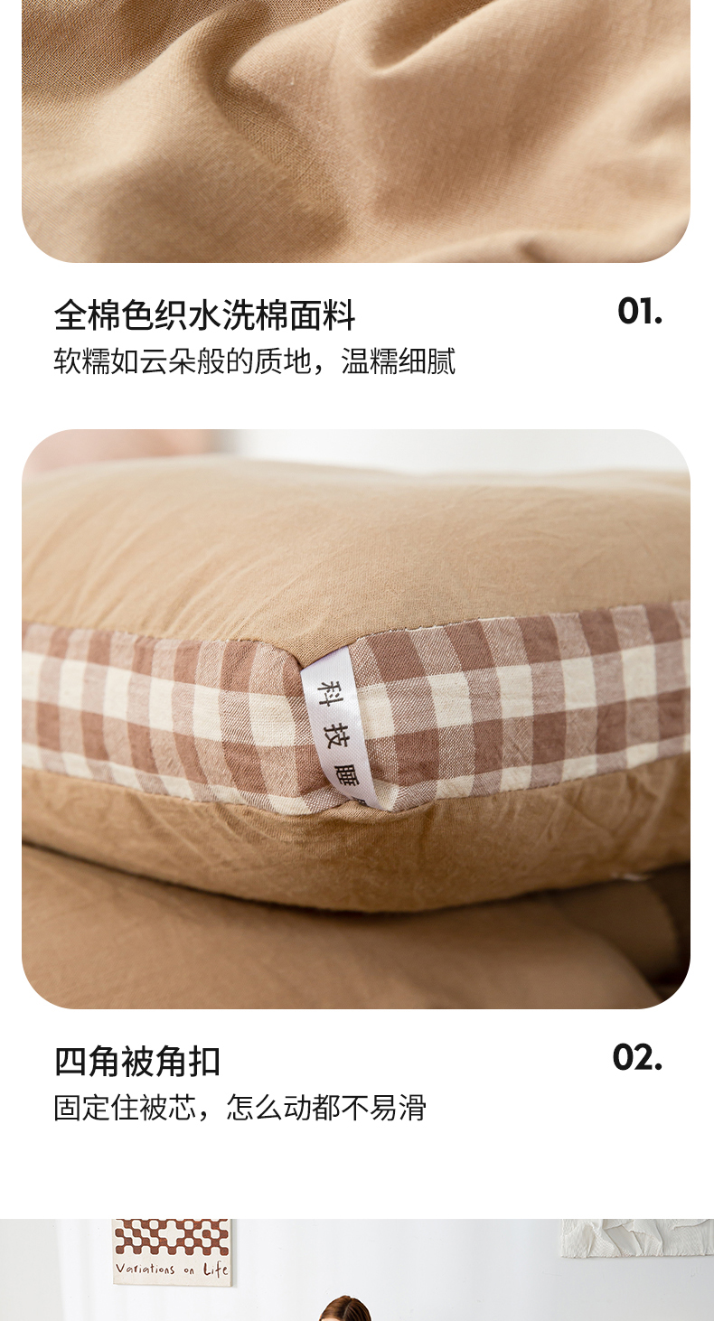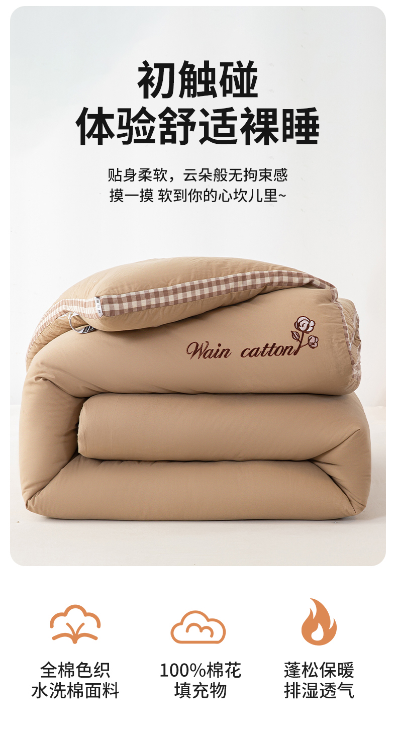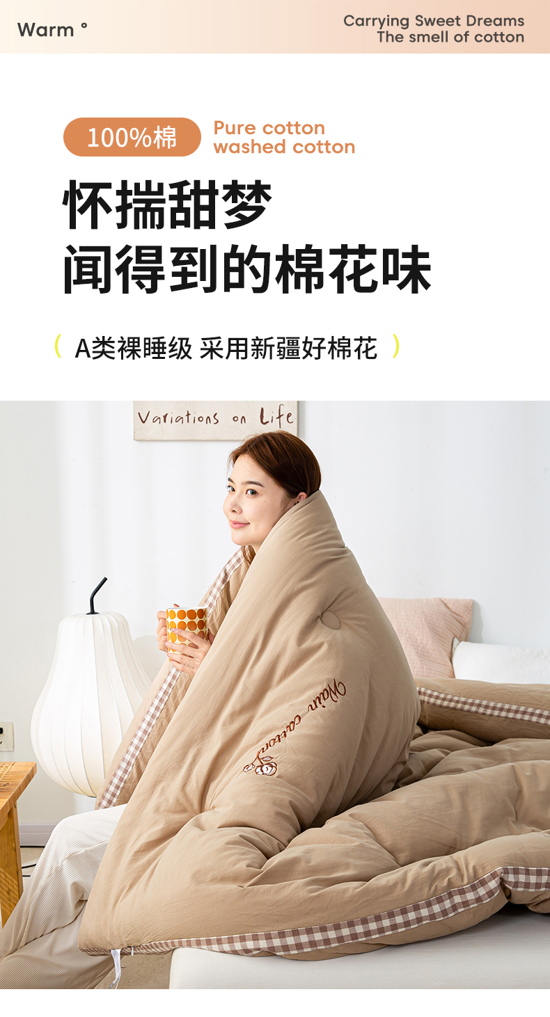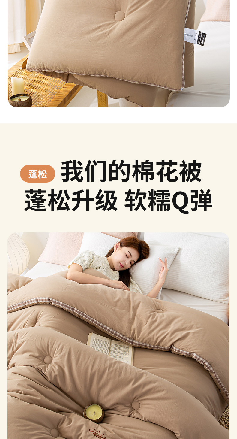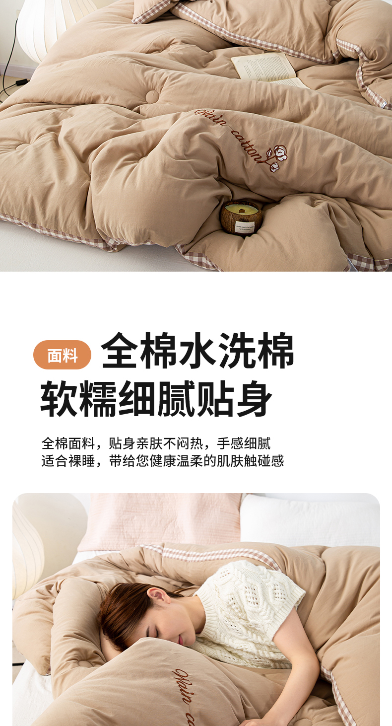 • 91家纺网 家纺一手货源 找家纺 鸣升 23新款棋盘格全棉花被色织水洗棉100%冬被被子 棋盘格-浅驼