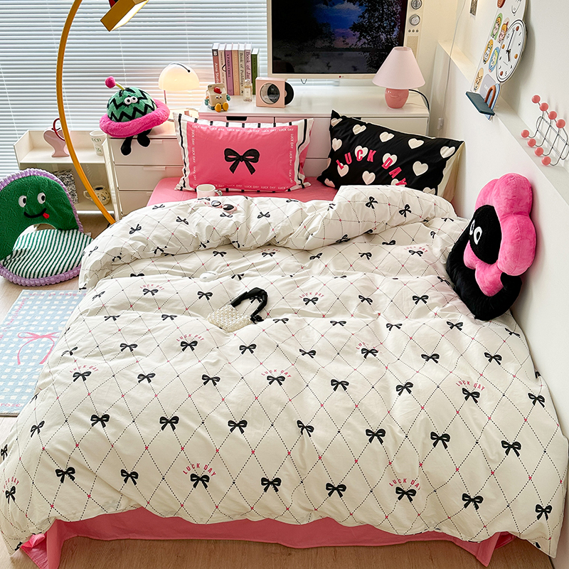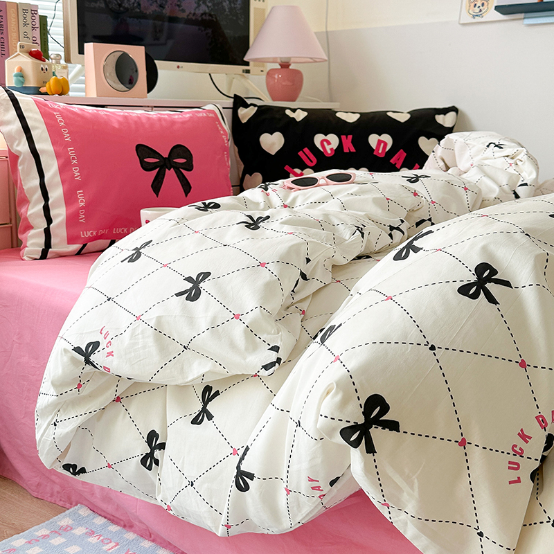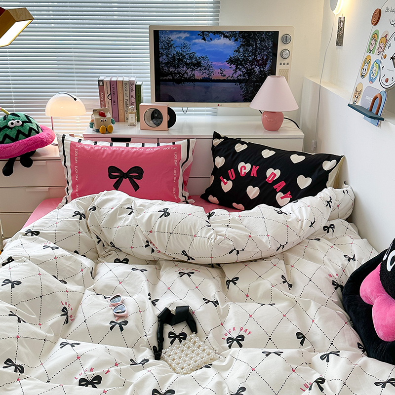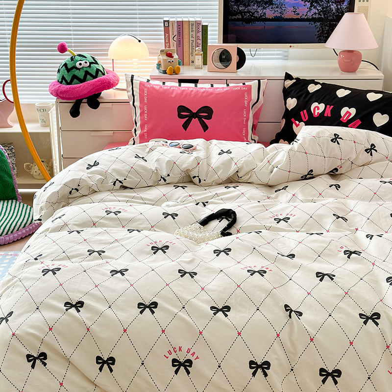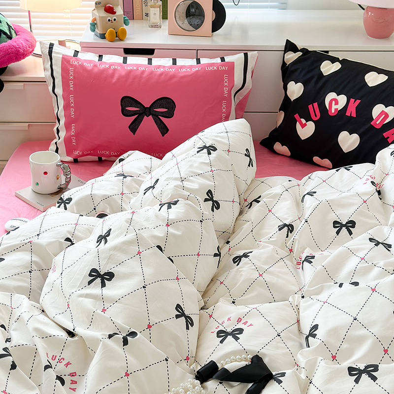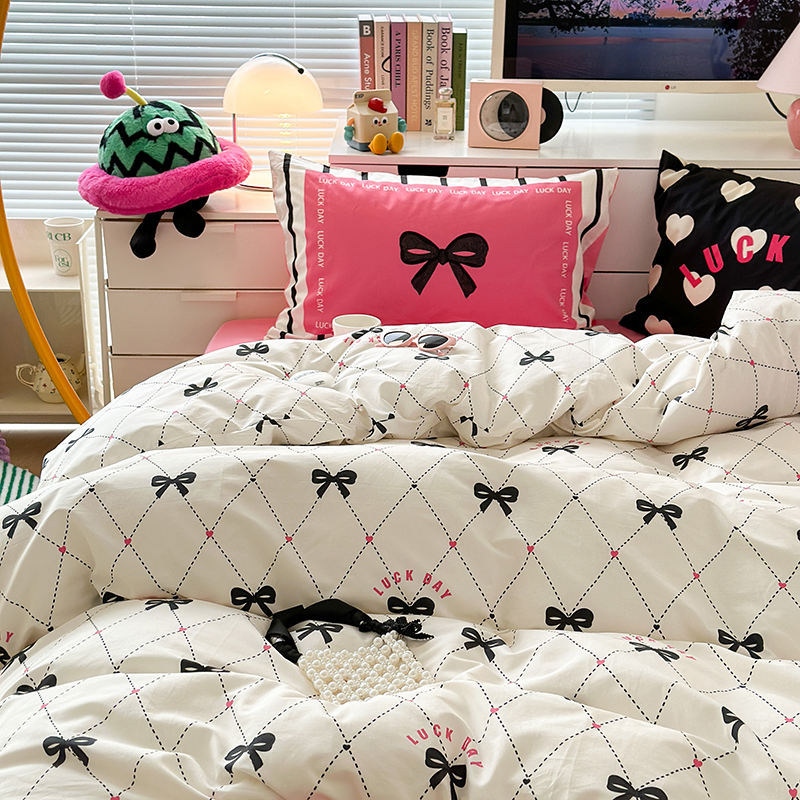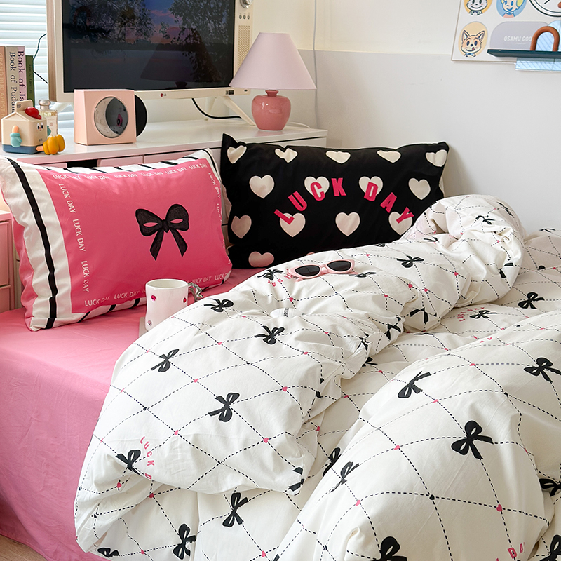 (总)昔可家纺 2024新款印花牛奶绒四件套系列-ins少女系列,芭蕾蛋糕,芭蕾美学,粉格蝴蝶结,黑粉芭蕾蝴蝶结,蓝格蝴蝶结,樱桃奶油蛋糕