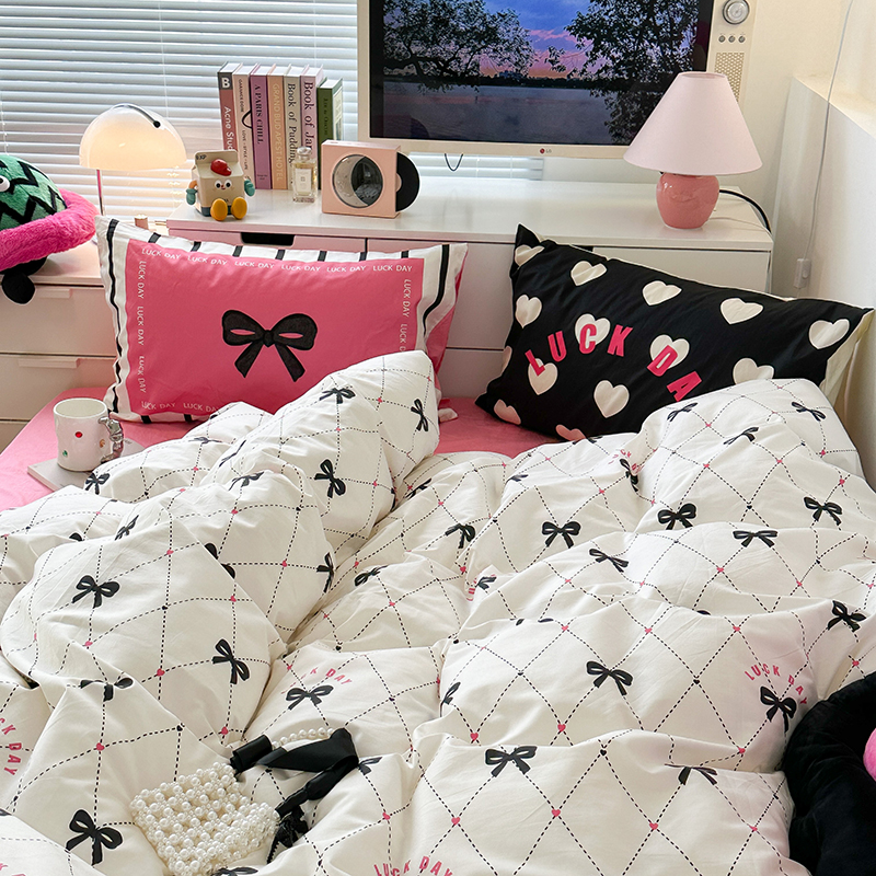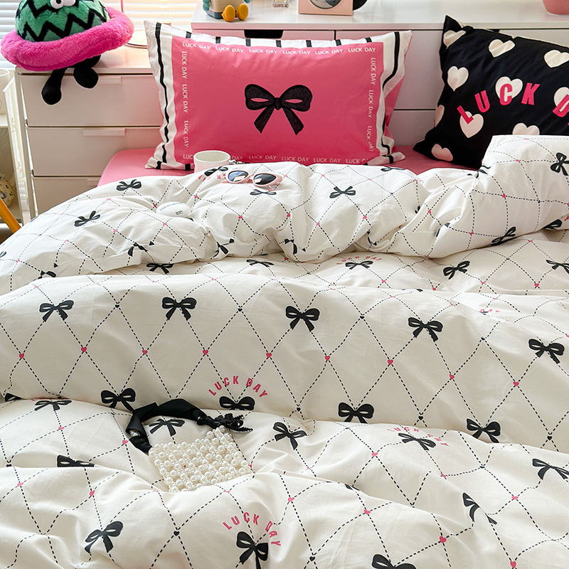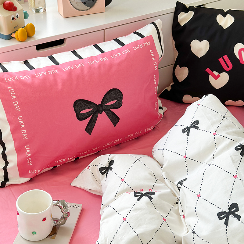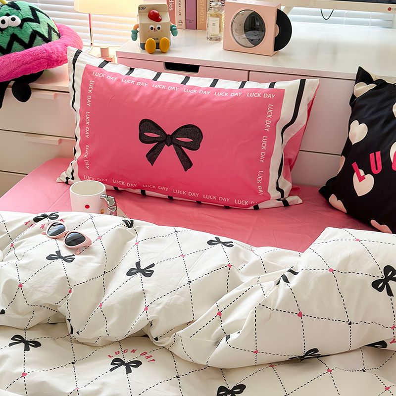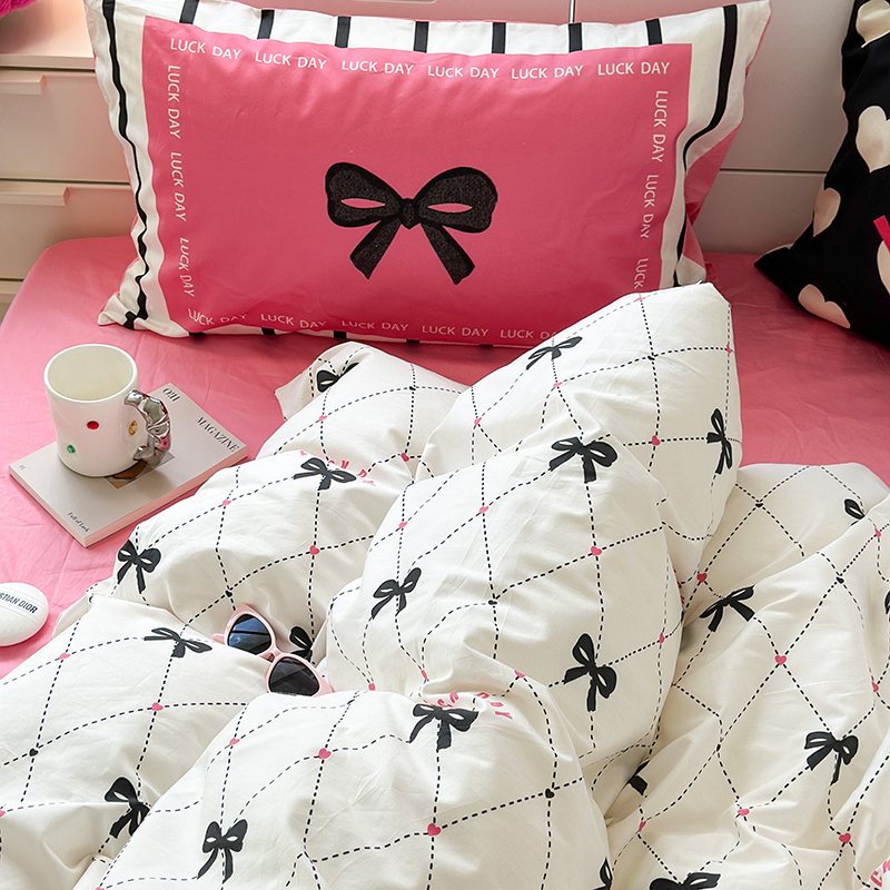 昔可家纺 2023新款全棉大版数码枕套四件套 菱形蝴蝶结