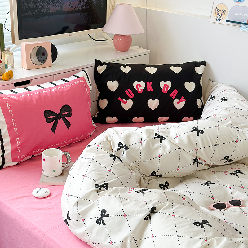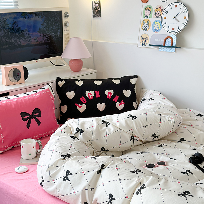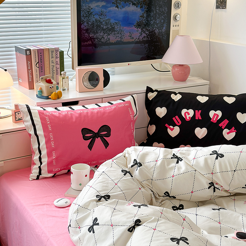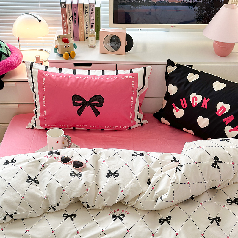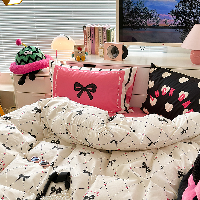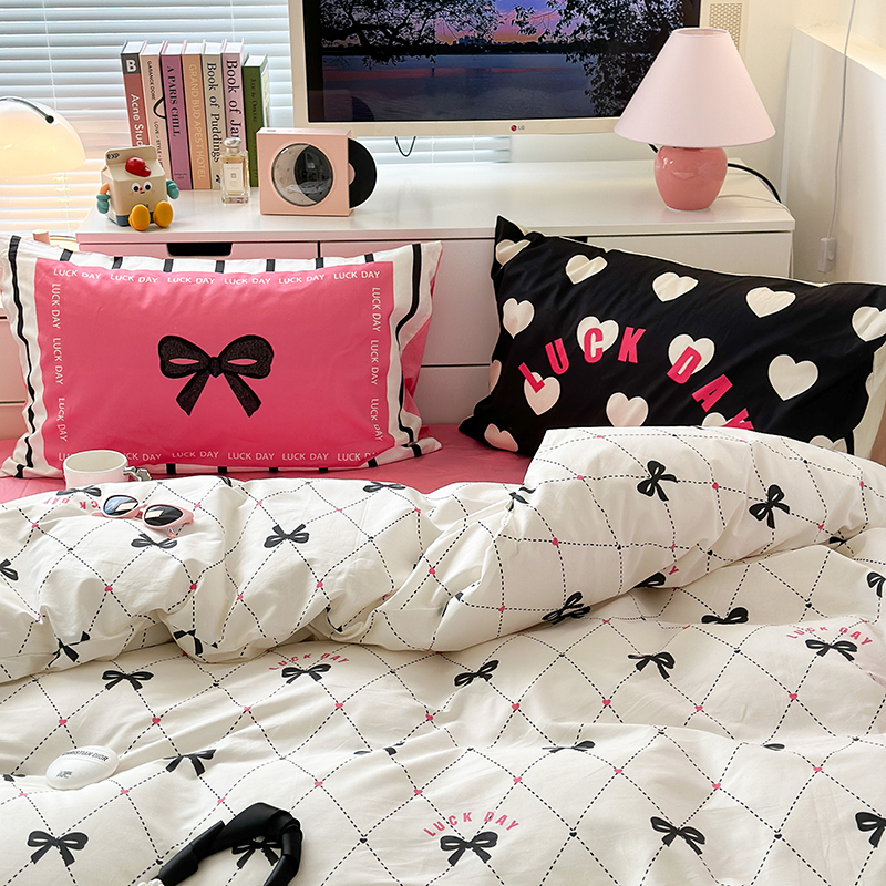 昔可家纺 2023新款全棉大版数码枕套四件套 菱形蝴蝶结