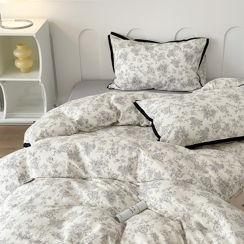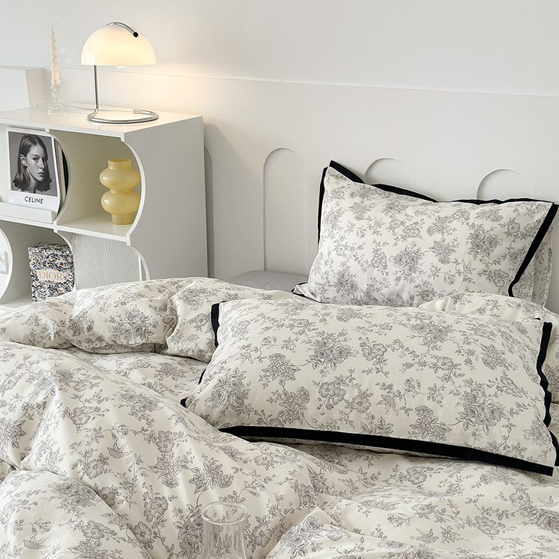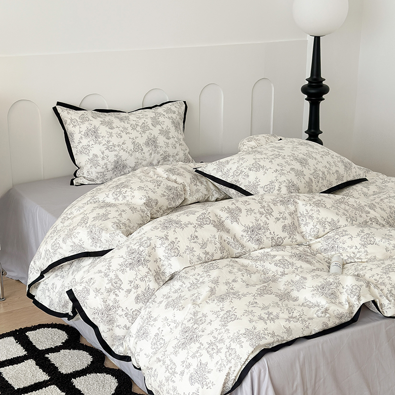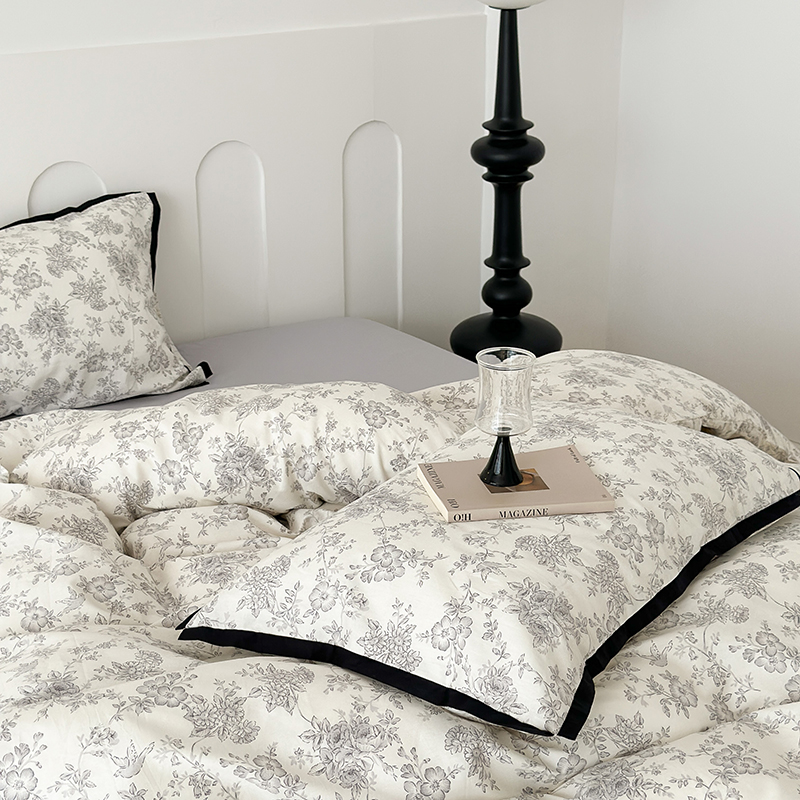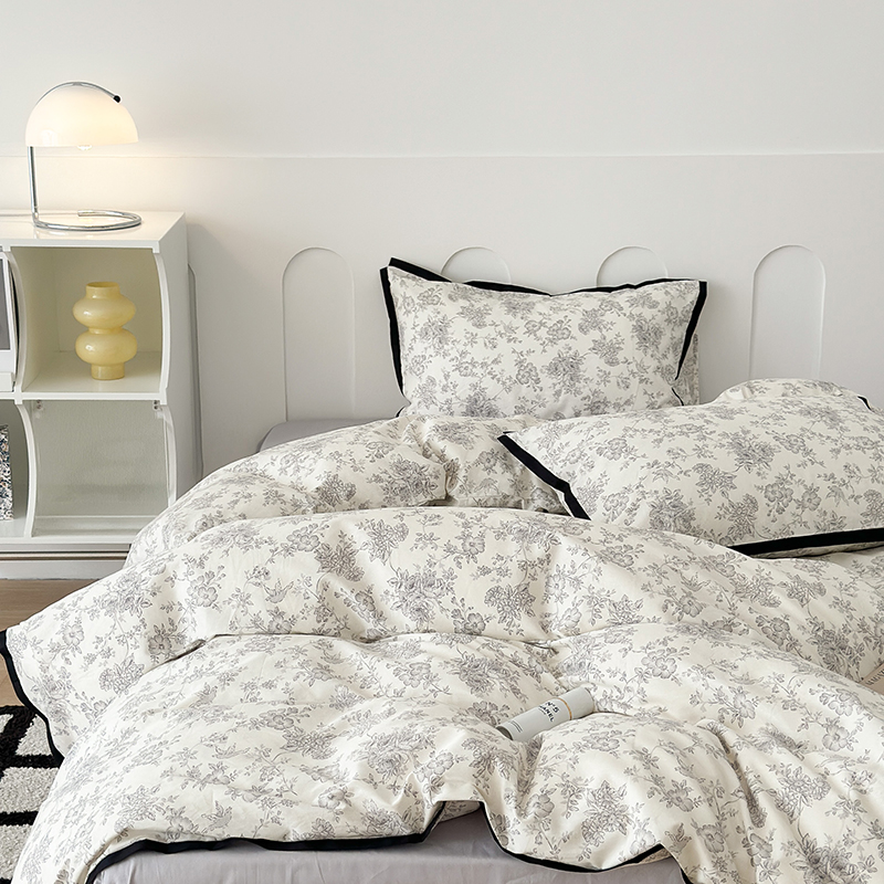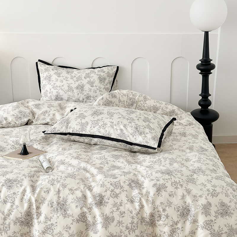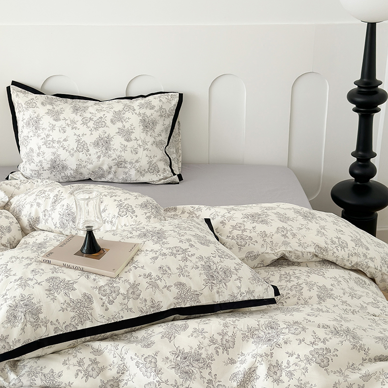 昔可家纺 2023新款全棉复古风黑花边四件套(风格二) 水墨