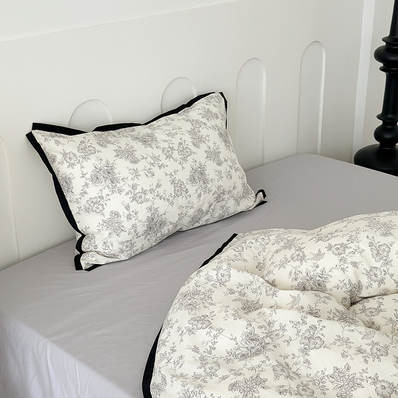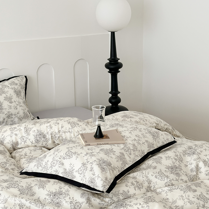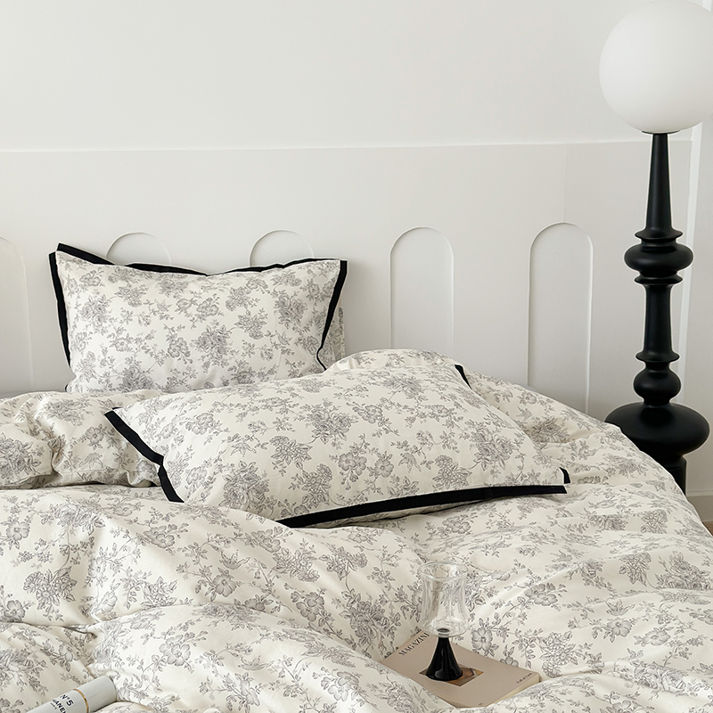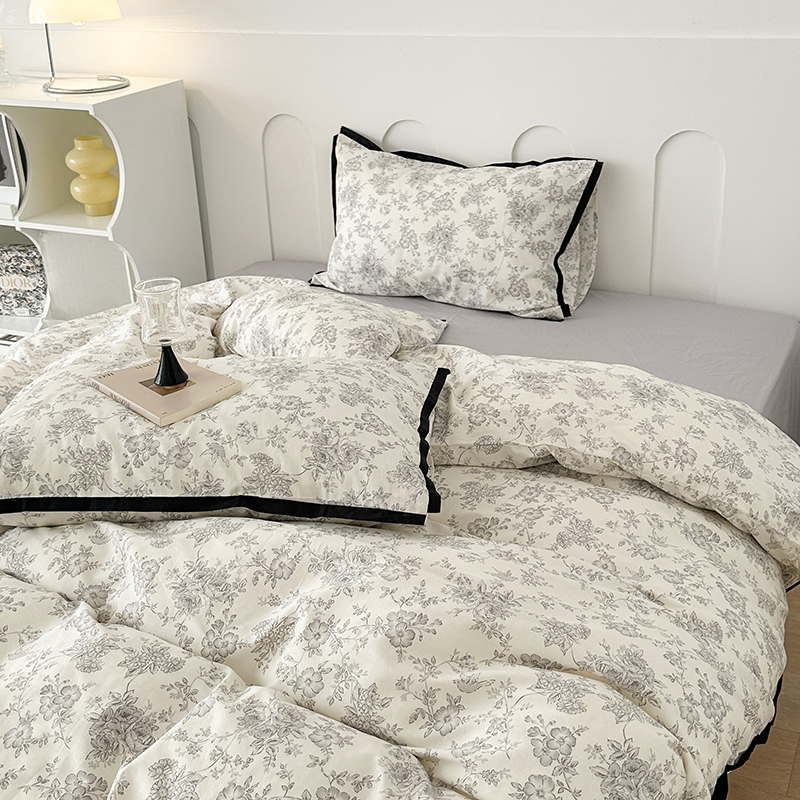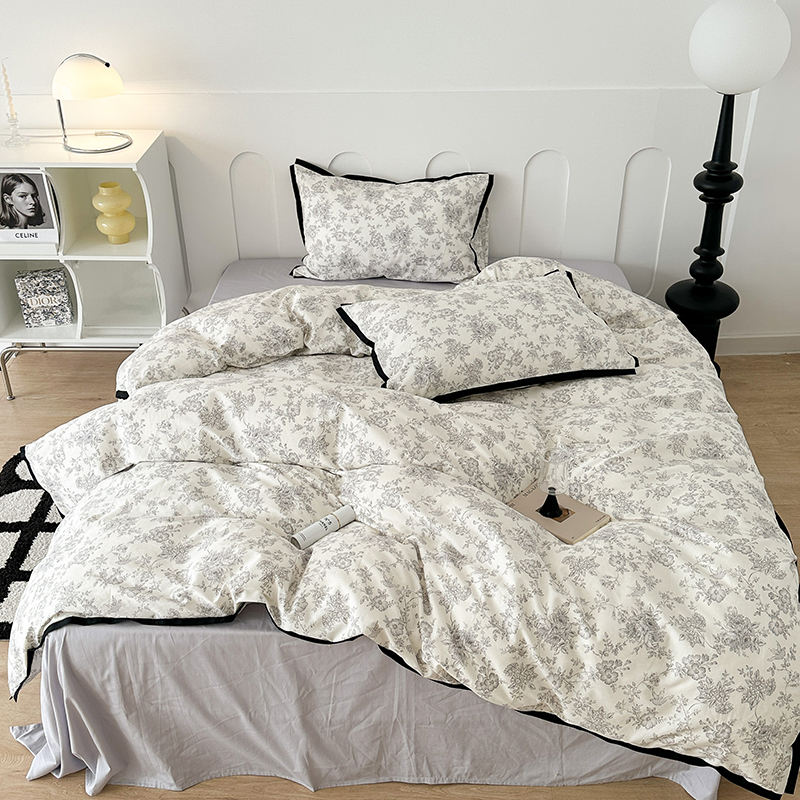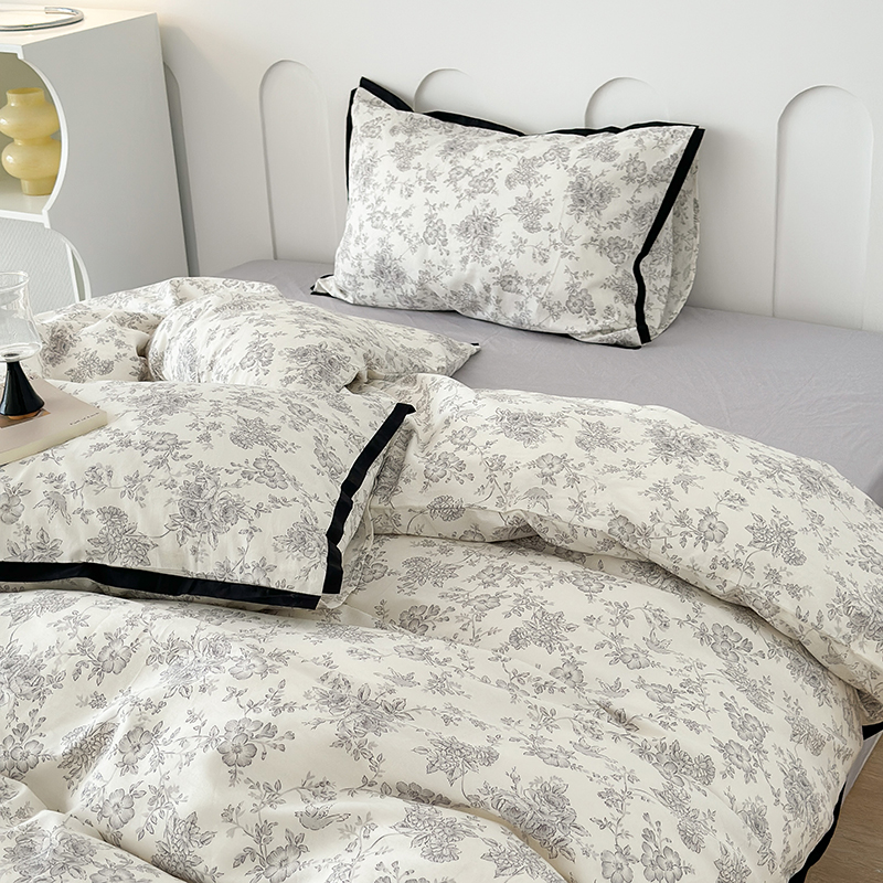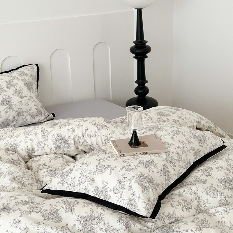 昔可家纺 2023新款全棉复古风黑花边四件套(风格二) 水墨