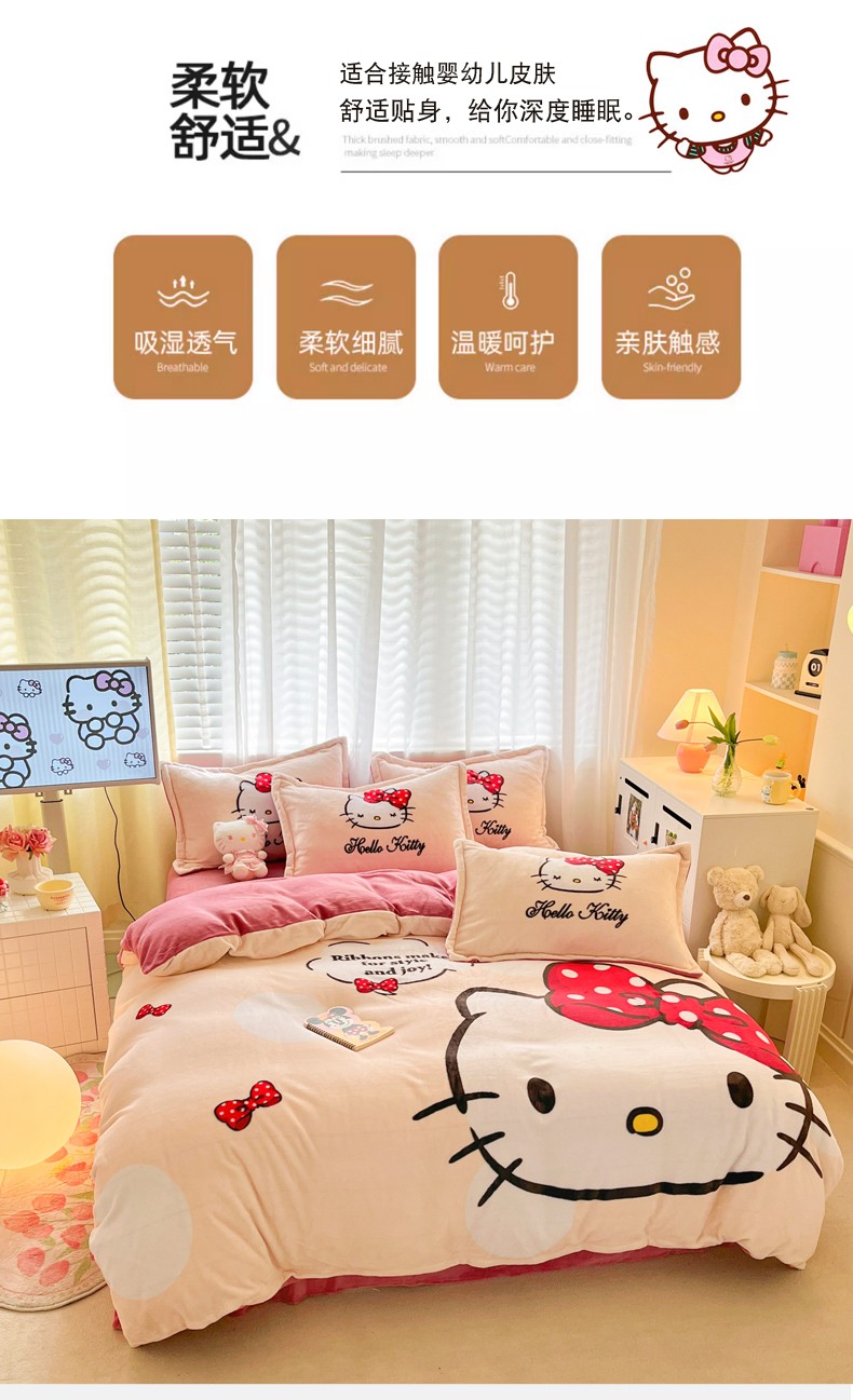 当前位置: 91家纺网 > 商品网购 > 床品套件 > 四件套 > 牛奶绒四件套 > 金爱家 2023新款kt猫大阪加厚牛奶绒系列四件套 蝴蝶kt