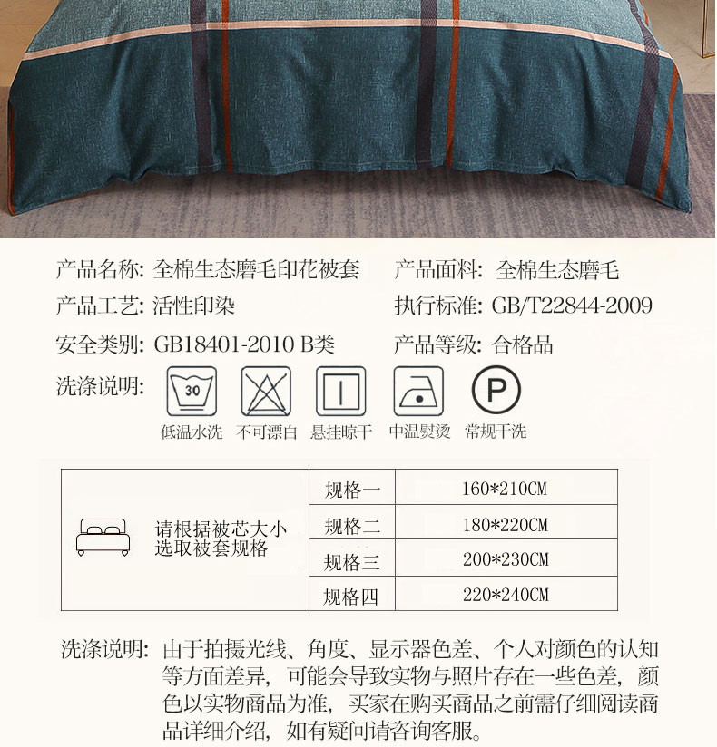商品名称:晶缦 2023新款典雅系全棉活性磨毛多规格单品四件套-被套 悠悠岁月