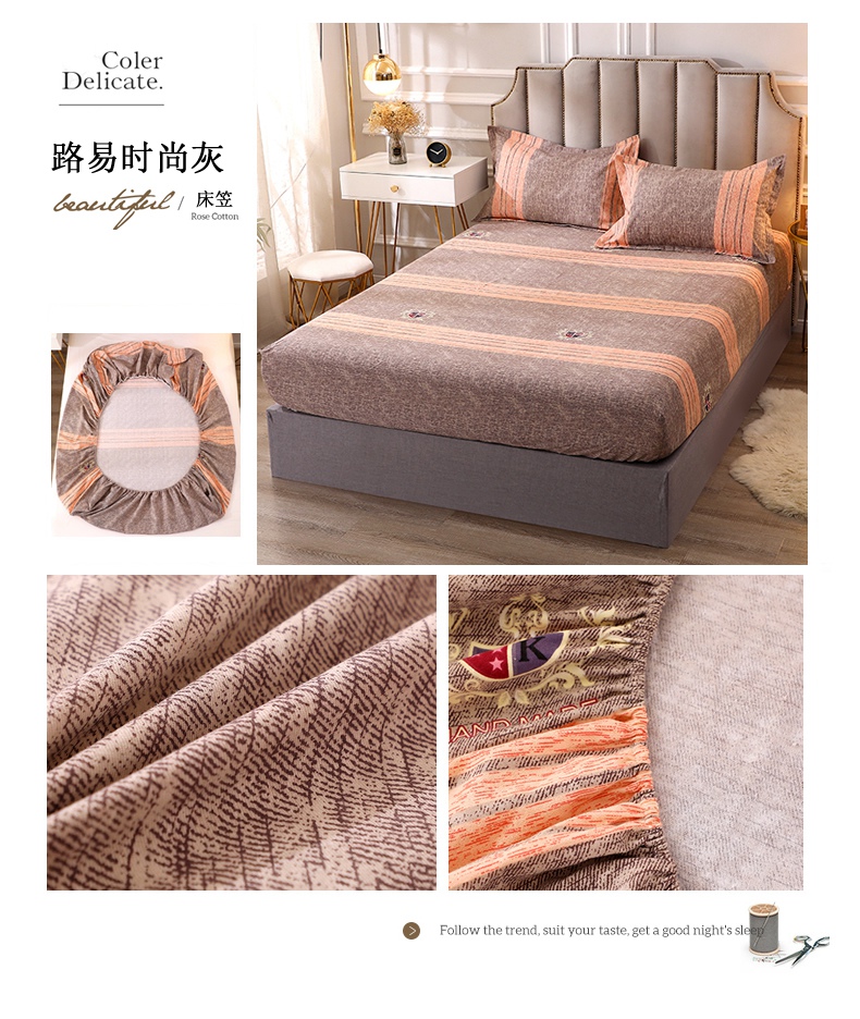 晶缦家纺 2023新款典雅系全棉活性磨毛多规格单品床笠 路易时尚-灰