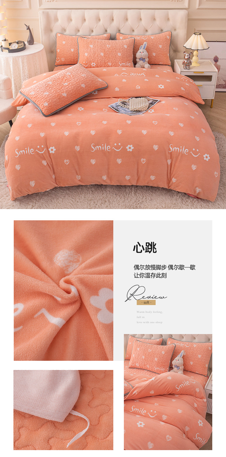 商品名称:梓依家纺 2023新款牛奶绒床盖款四件套 心跳