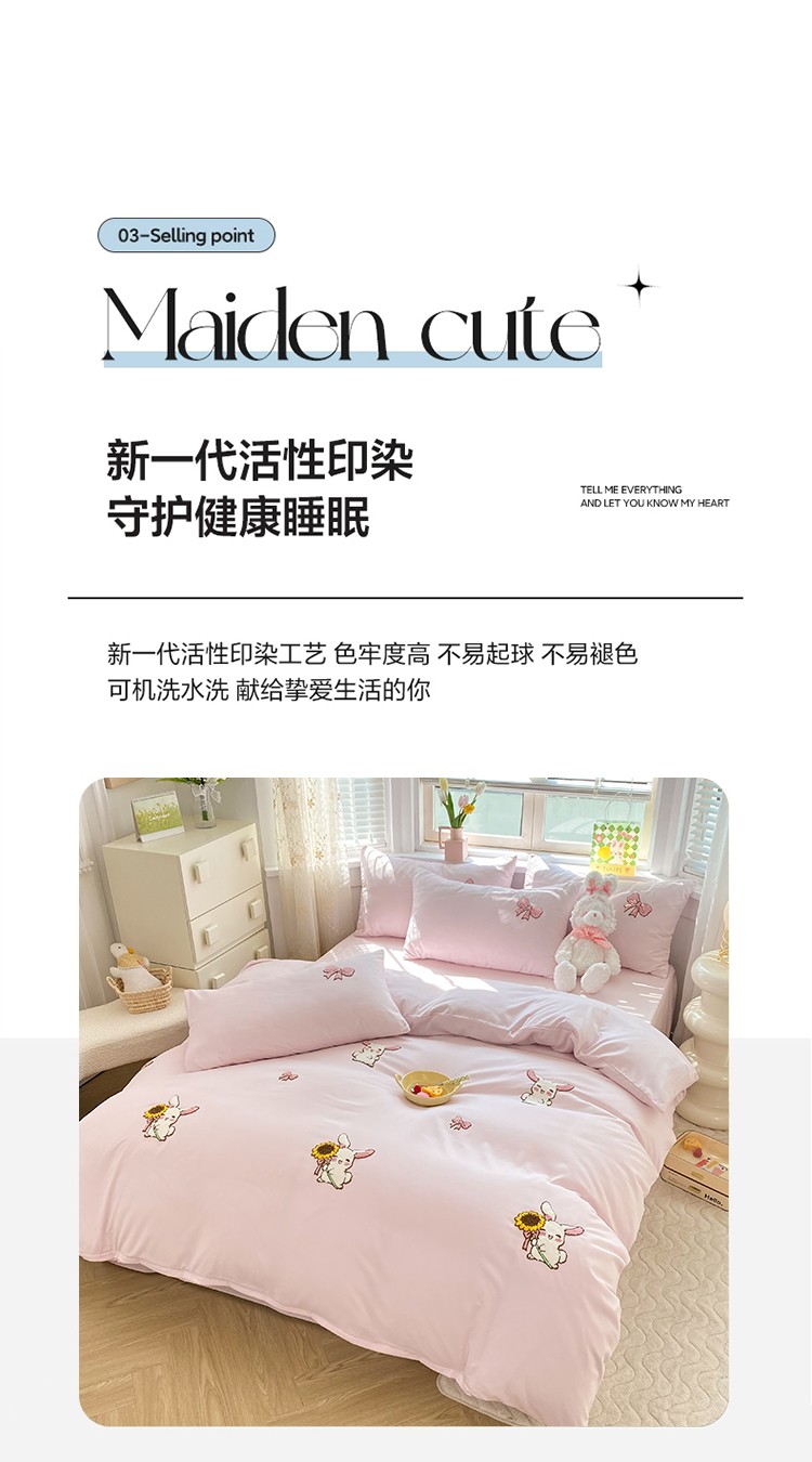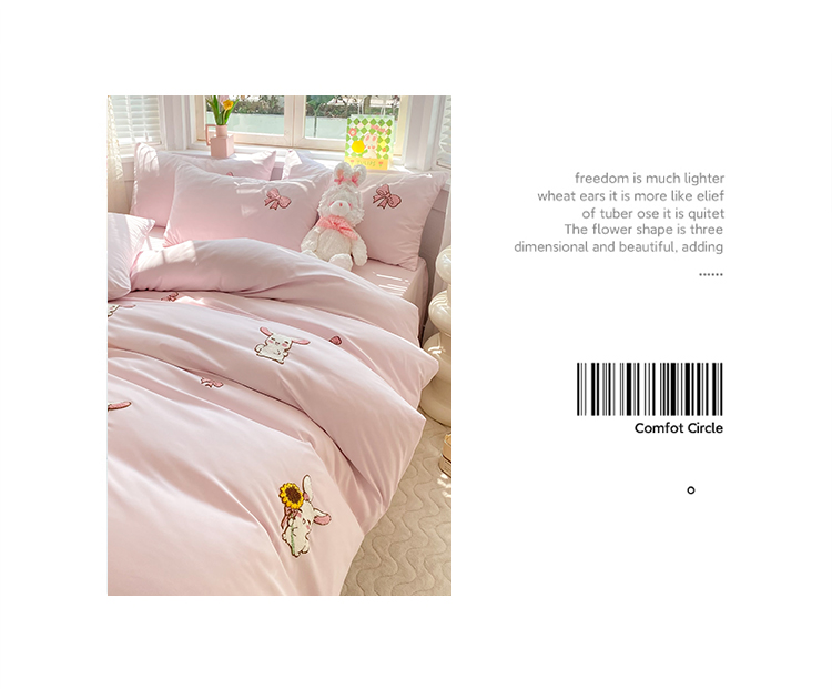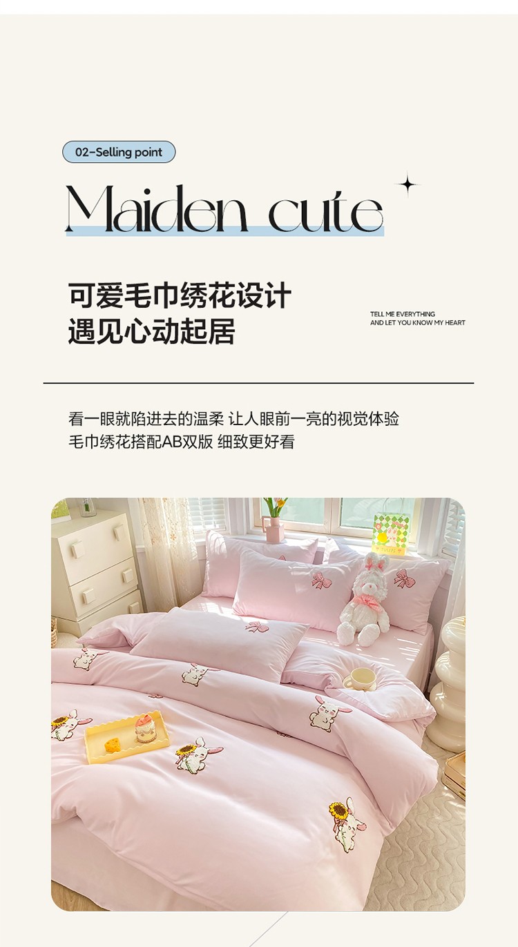 商品名称:欧冠 2023新款秋冬保暖专版水洗棉麻毛巾绣四件套 兔宝贝-粉