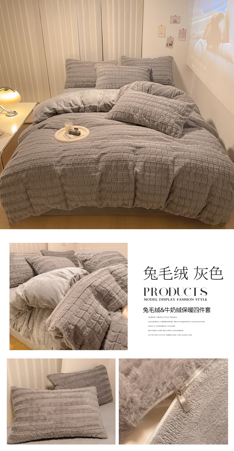 当前位置: 91家纺网 > 商品网购 > 床品套件 > 四件套 > 牛奶绒四件套 > 沐慕 2023新款AB版牛奶绒兔毛绒四件 兔毛绒-灰色
