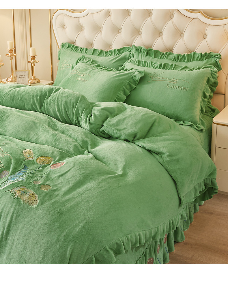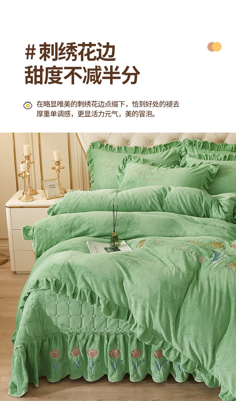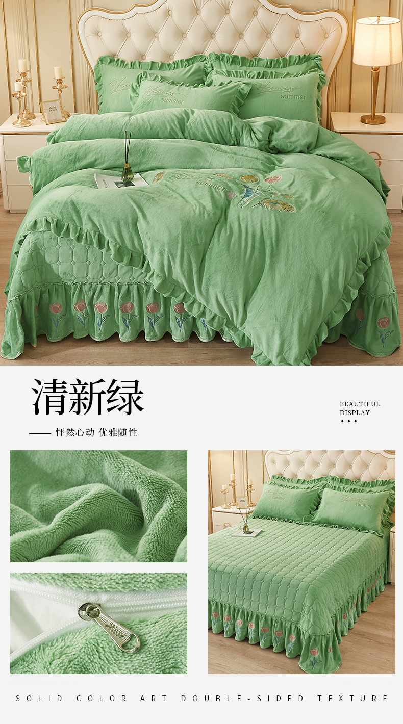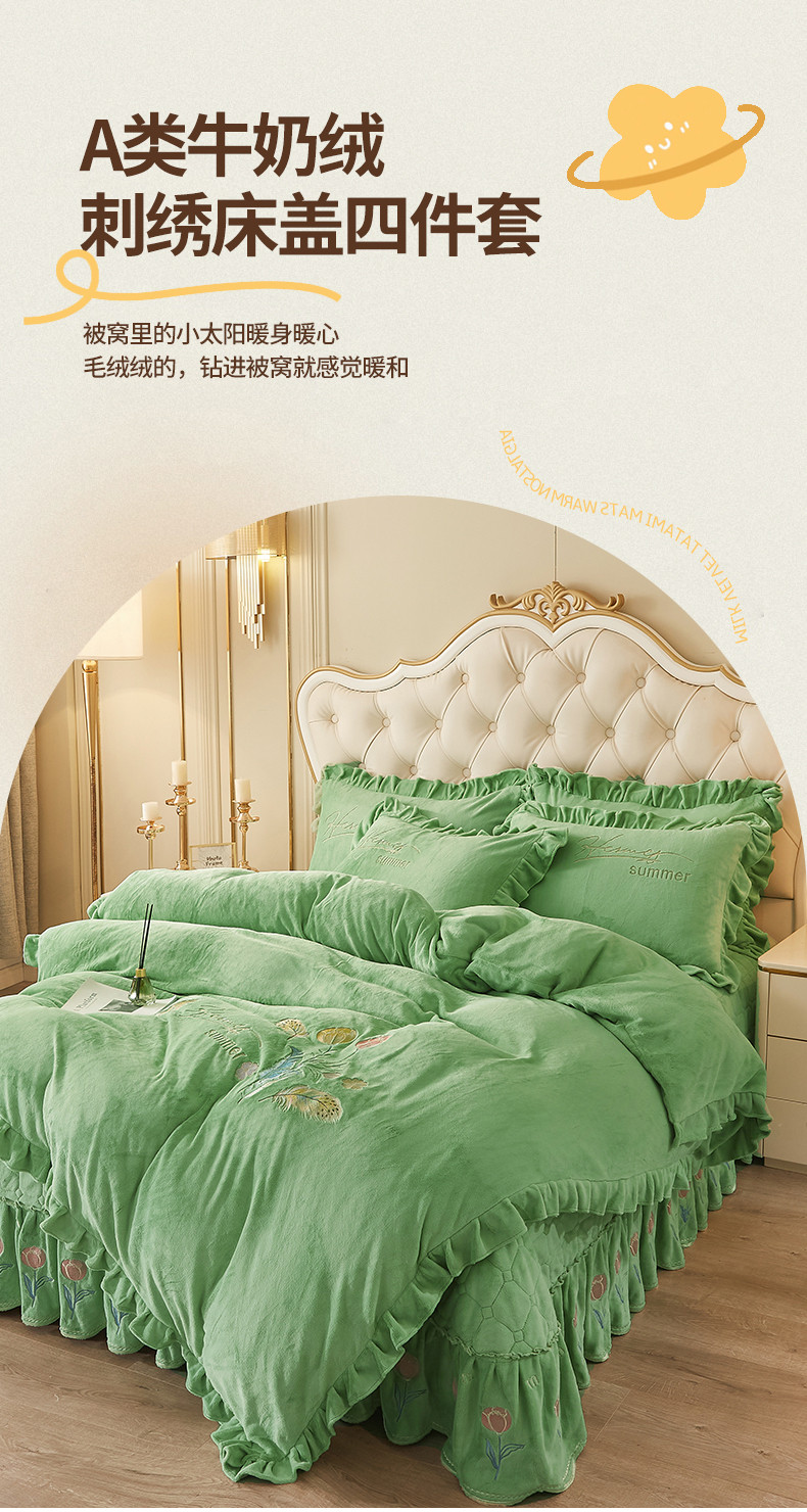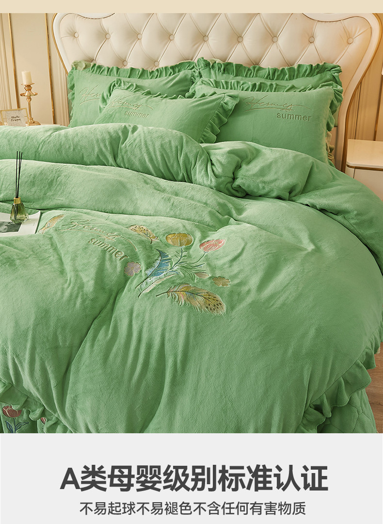 当前位置: 91家纺网 > 商品网购 > 床品套件 > 四件套 > 牛奶绒四件套 > 恒爱 2023新款A类牛奶绒羽毛床盖四件套 羽毛-清新绿