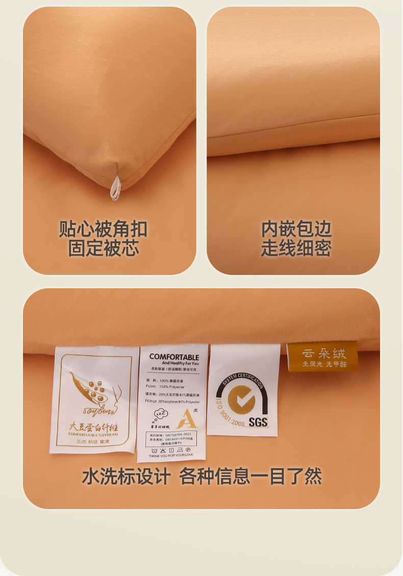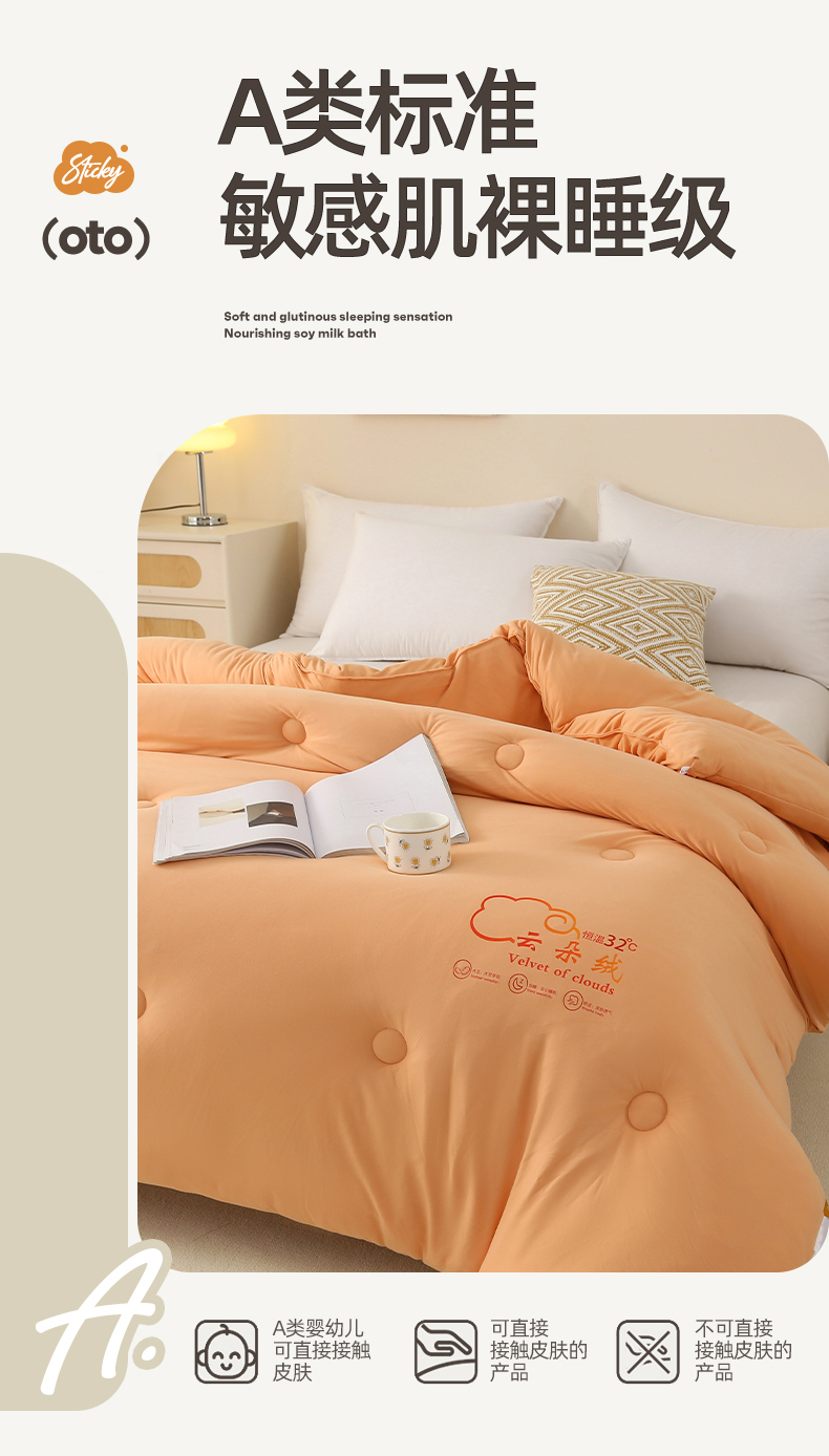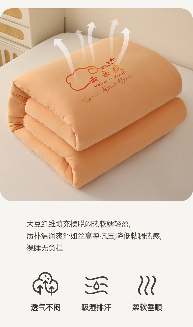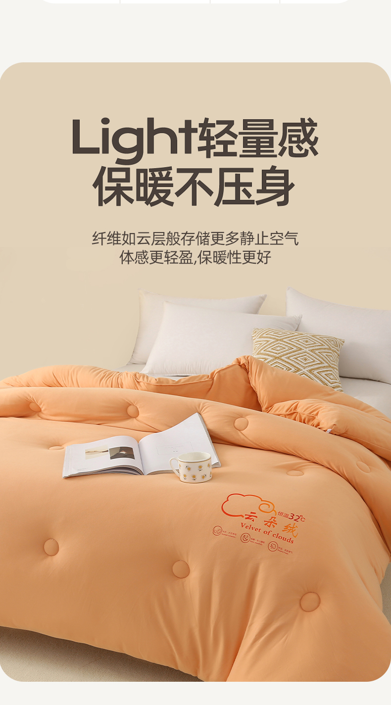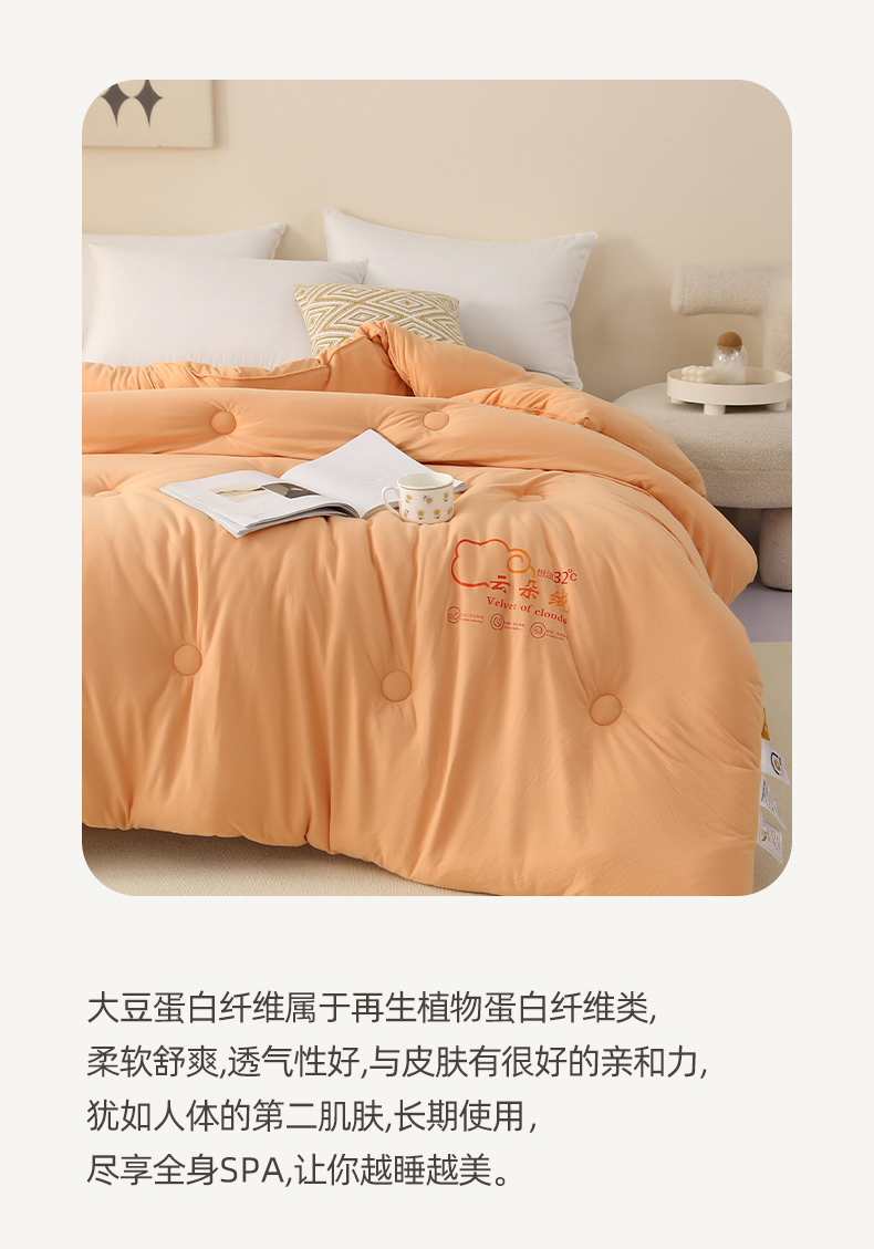 • 91家纺网 家纺一手货源 找家纺 薇玛仕 2023新款A类云朵绒恒温大豆被春秋被加厚冬被 云朵绒-橘