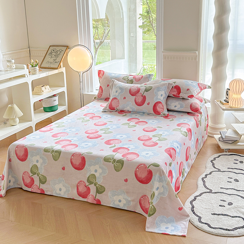 胜权2024牛奶绒床单 樱桃世界