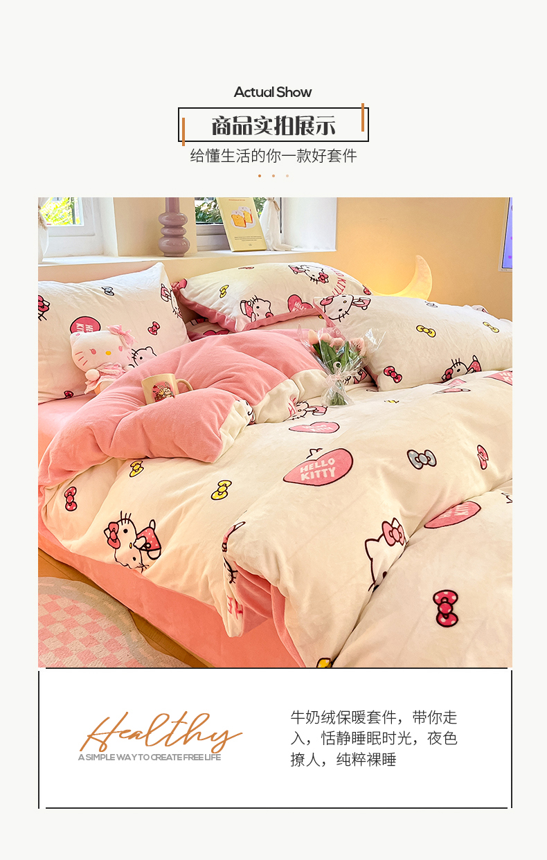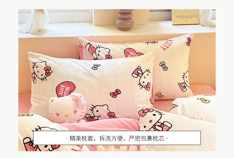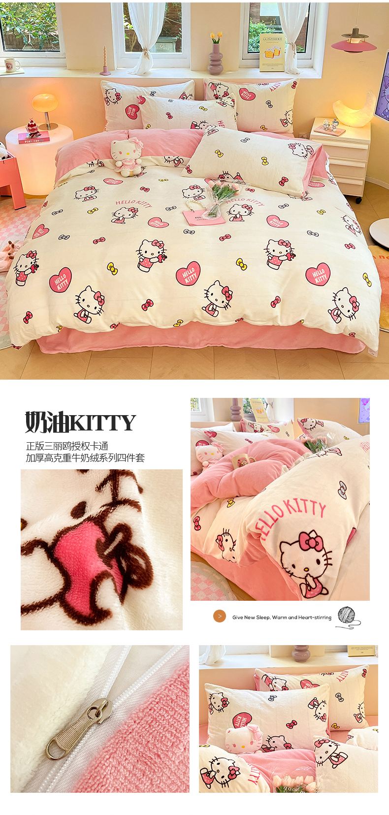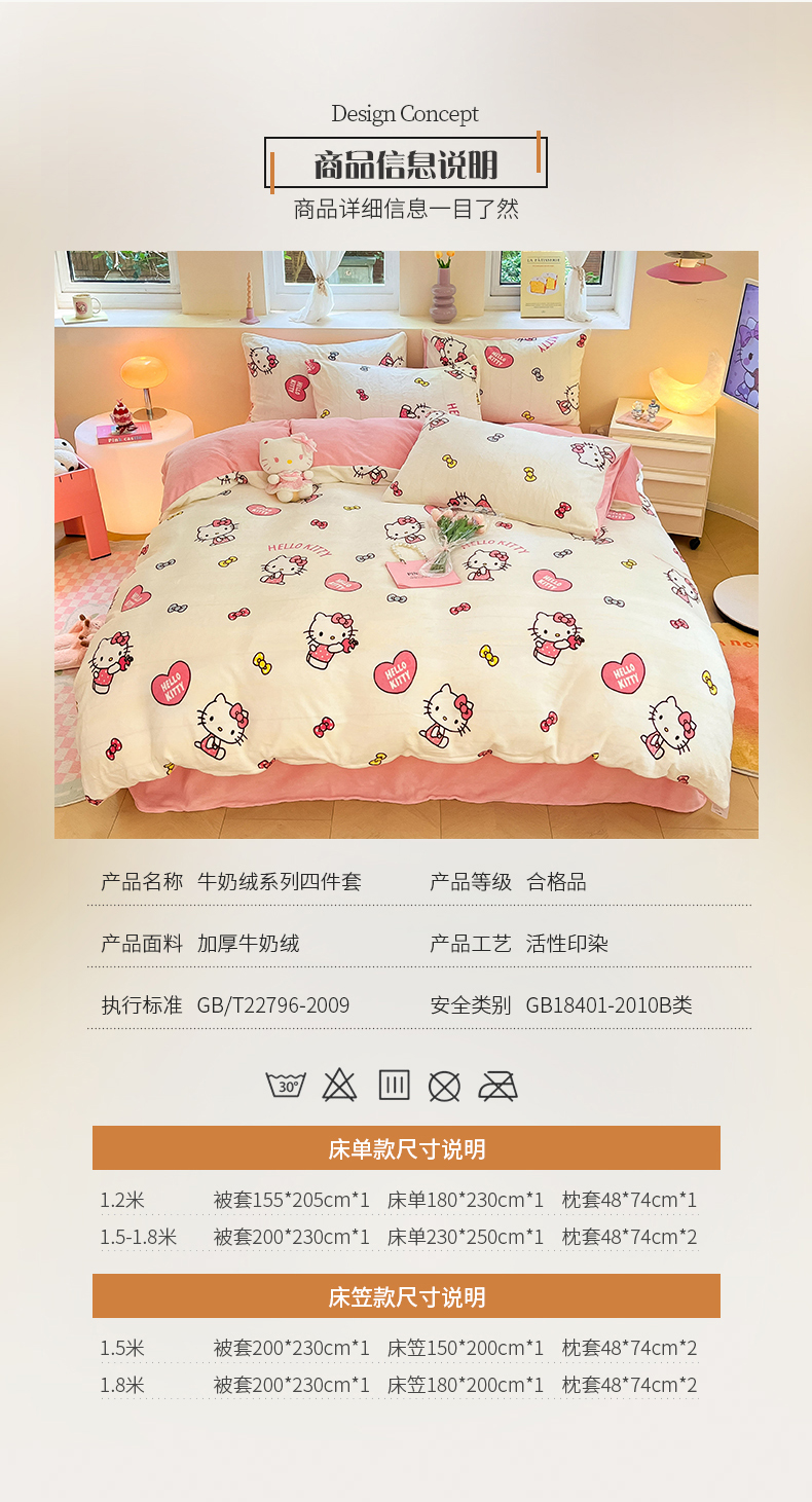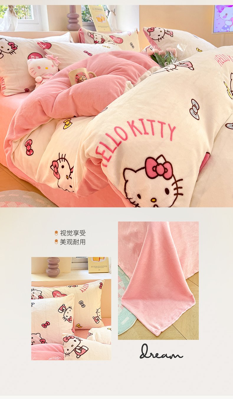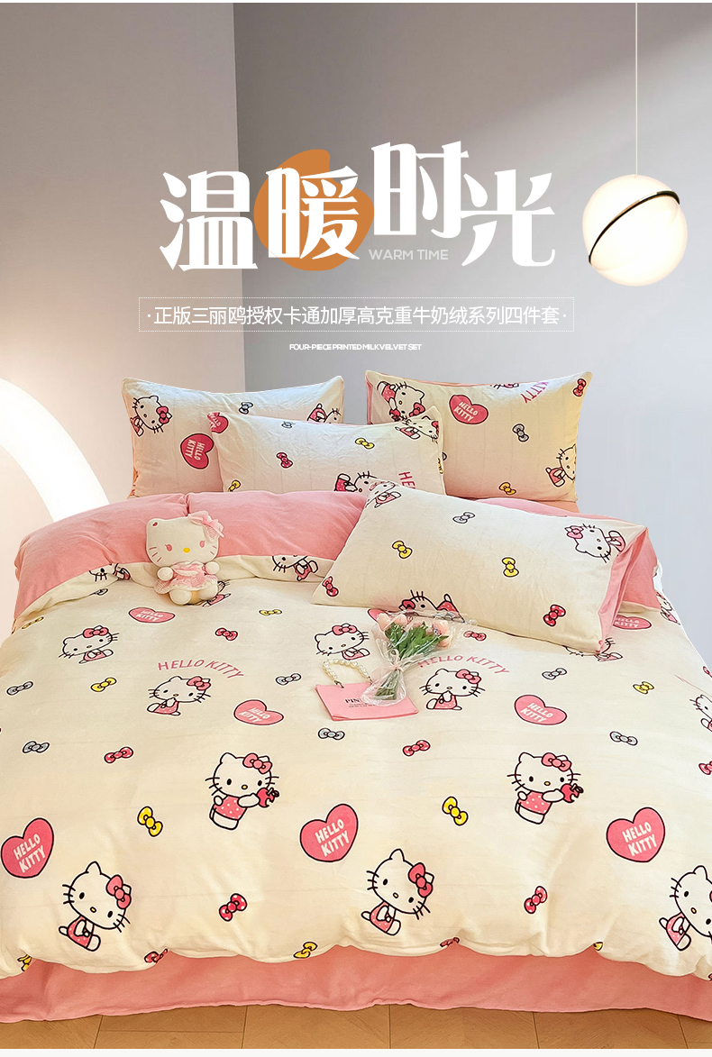 当前位置: 91家纺网 > 商品网购 > 床品套件 > 四件套 > 牛奶绒四件套 > 桃子 2023新款正版三丽鸥授权卡通加厚高克重牛奶绒系列四件套 绒三丽鸥-奶油kitty