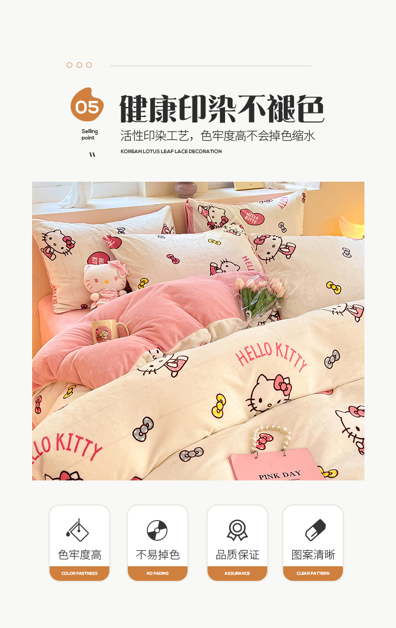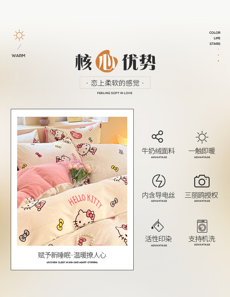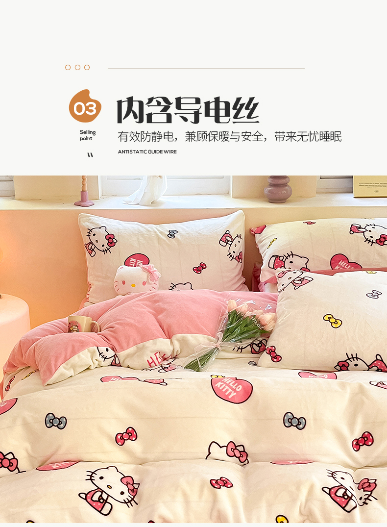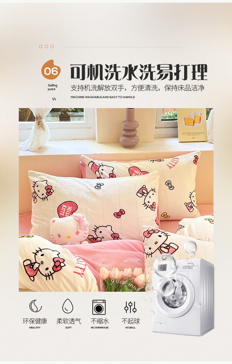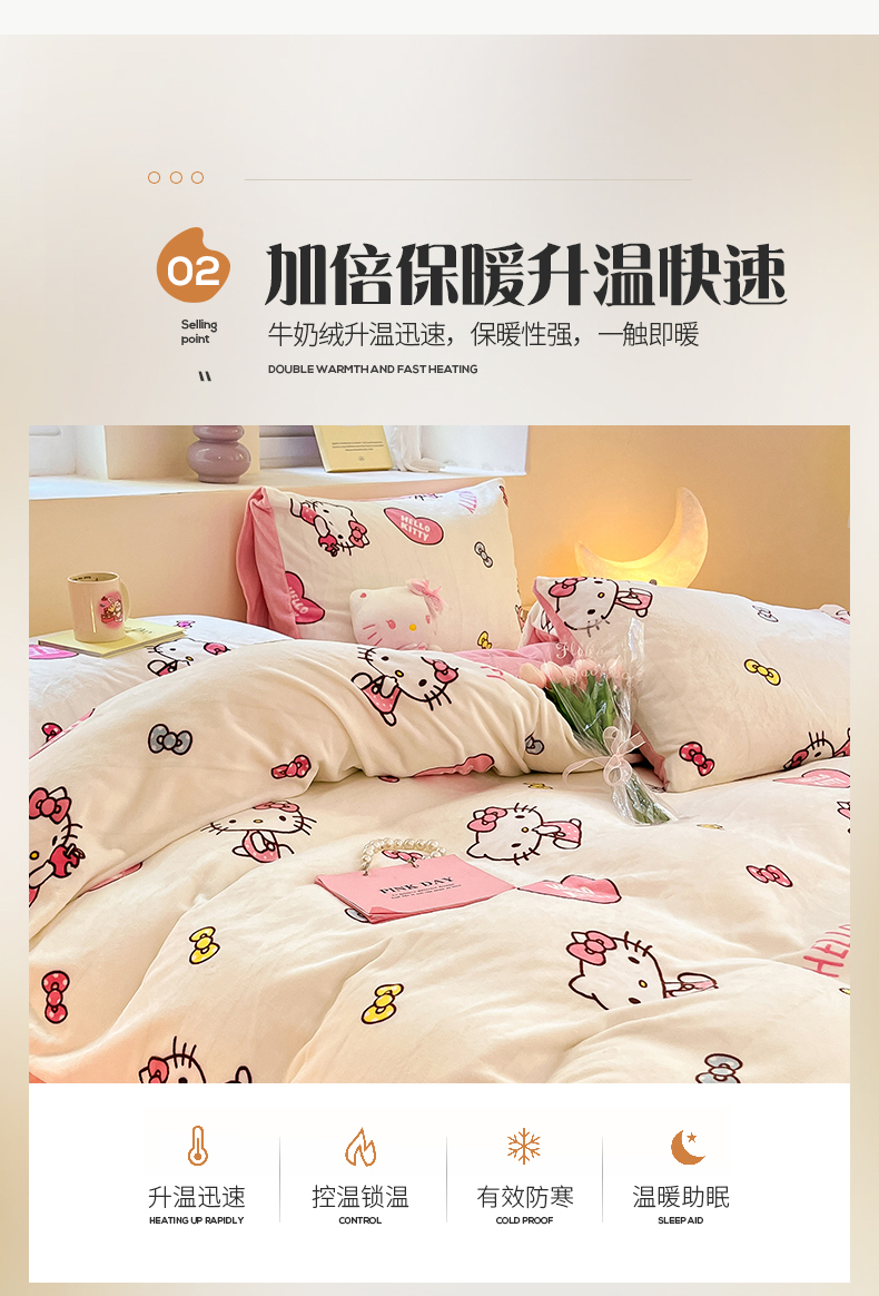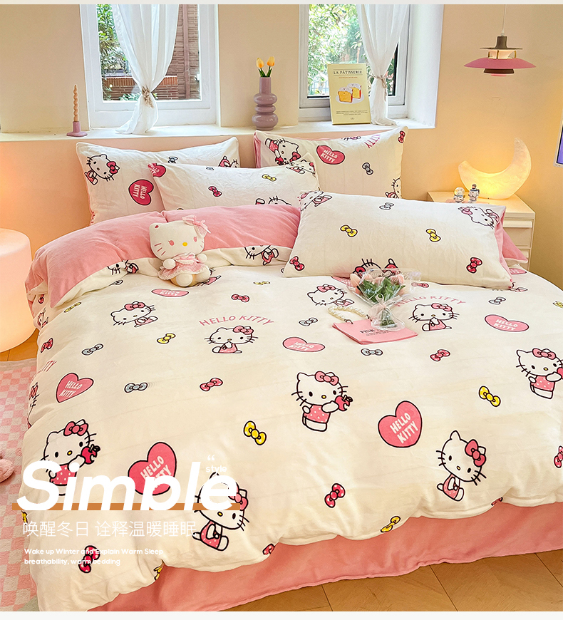 当前位置: 91家纺网 > 商品网购 > 床品套件 > 四件套 > 牛奶绒四件套 > 桃子 2023新款正版三丽鸥授权卡通加厚高克重牛奶绒系列四件套 绒三丽鸥-奶油kitty