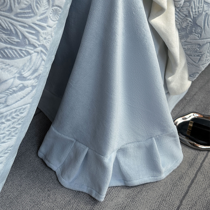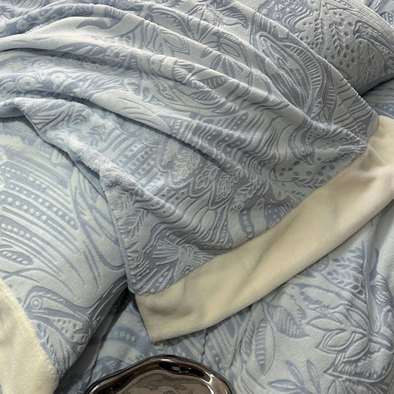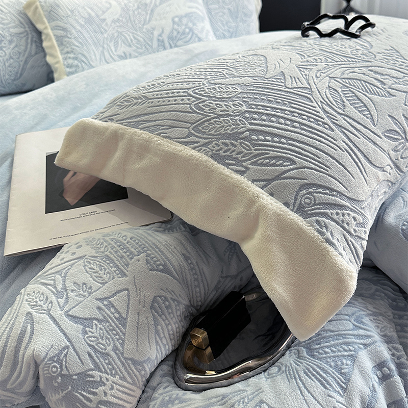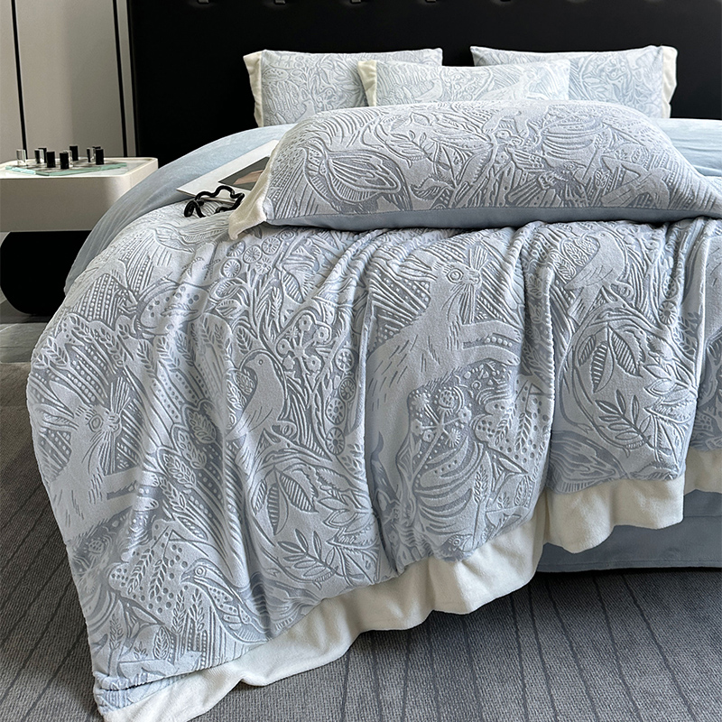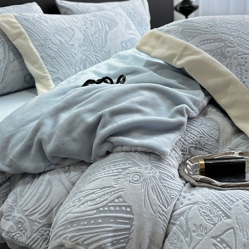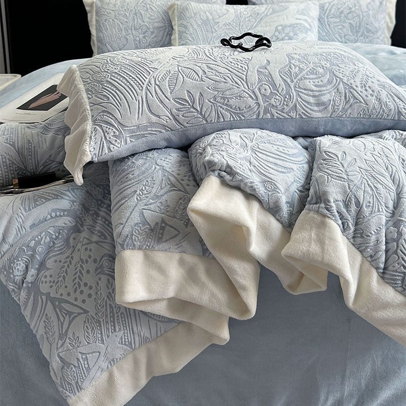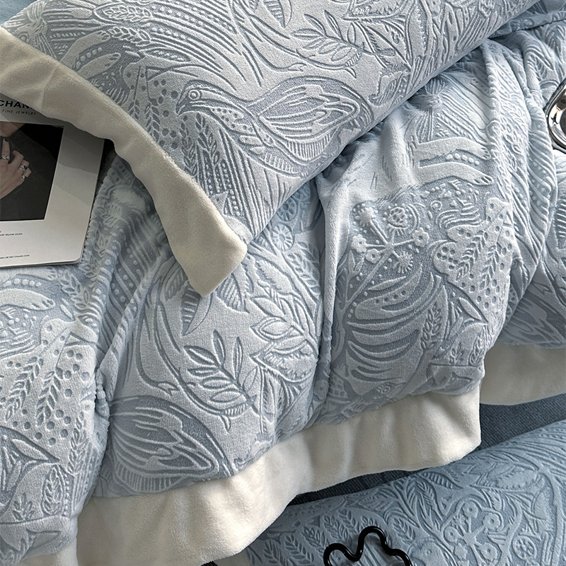 床品套件 > 宅家居 2023新款高奢加厚A类高克重浮雕花绒剪花烂花牛奶绒四件套 布鲁斯-浅蓝