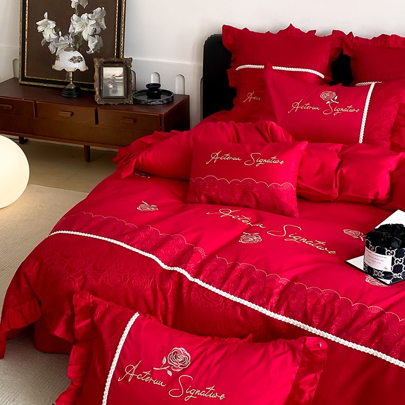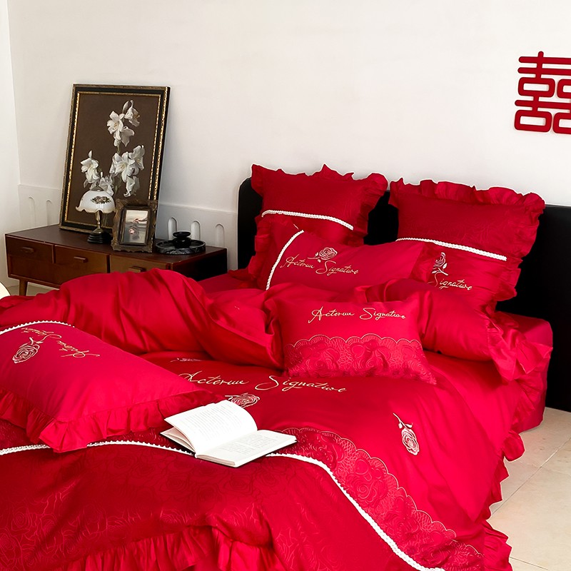 (总)用心 2026年新款双面长绒棉提花婚庆刺绣四件套,喜上喜,禧爱,吉祥