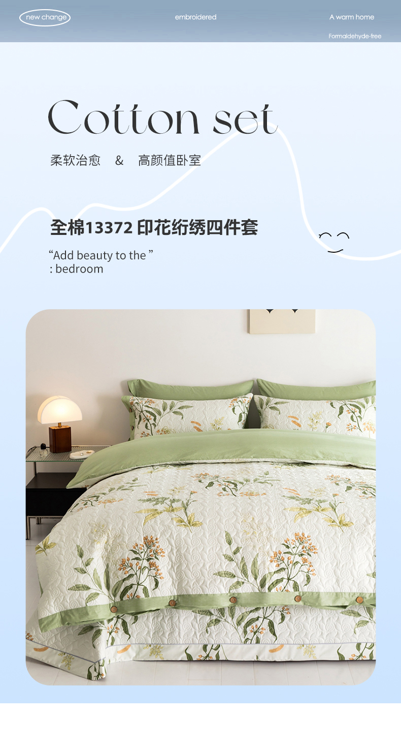 当前位置: 91家纺网 > 商品网购 > 床品套件 > 四件套 > 全棉普通四件套 > 优乐家纺 2023新款夹棉绗缝套件及单品系列-四件套 沁香