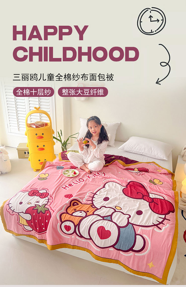 麻依 2023新款三丽鸥授权十层纱布童被 草莓kitty