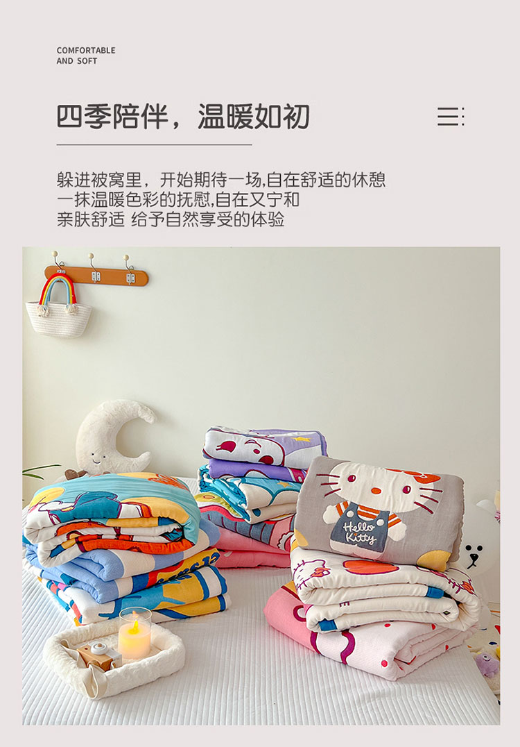 商品名称:麻依 2023新款三丽鸥授权十层纱布童被 草莓kitty