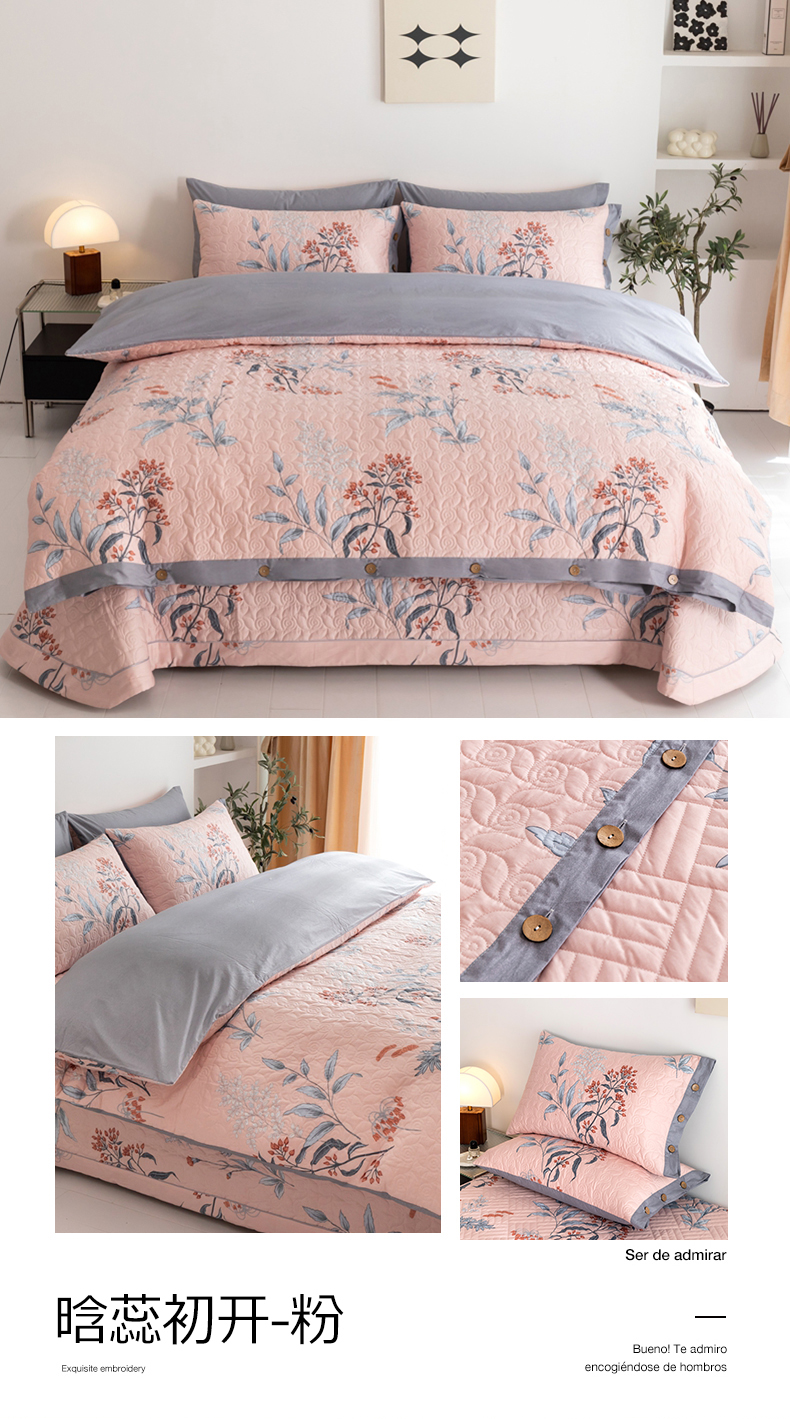 • 91家纺网 家纺一手货源 找家纺 优乐家纺 2023新款夹棉绗缝套件及单品系列-单被套 晗蕊初开-粉
