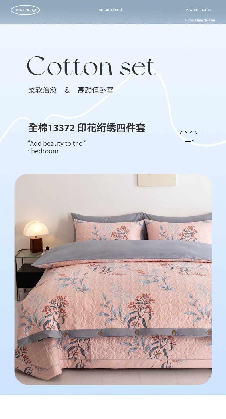 (总)优乐家纺 2025新款全棉斜纹13376单层被套夹棉床盖款四件套,安琪-黄,安琪-绿,波西米亚,博尔-咖,春意盎然,朵唯,花颜悦色,迷雾,慕斯,南薇,南薇-兰,普卡拉-红,普卡拉-兰,清婉,蔚然花,早春