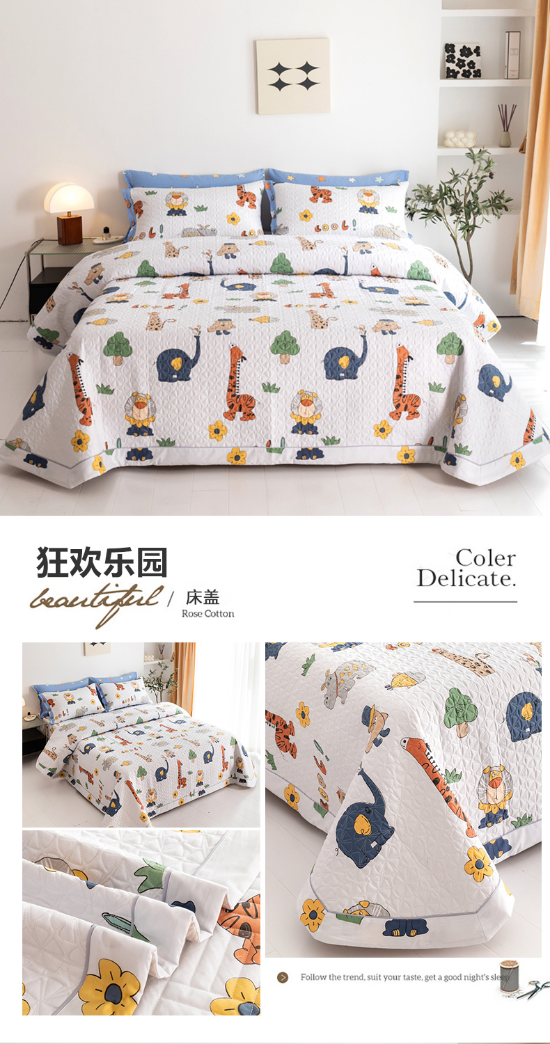 优乐家纺 2025新款纯棉印花夹棉系列床盖三件套-纽扣款新狂欢乐园,新狂欢乐园