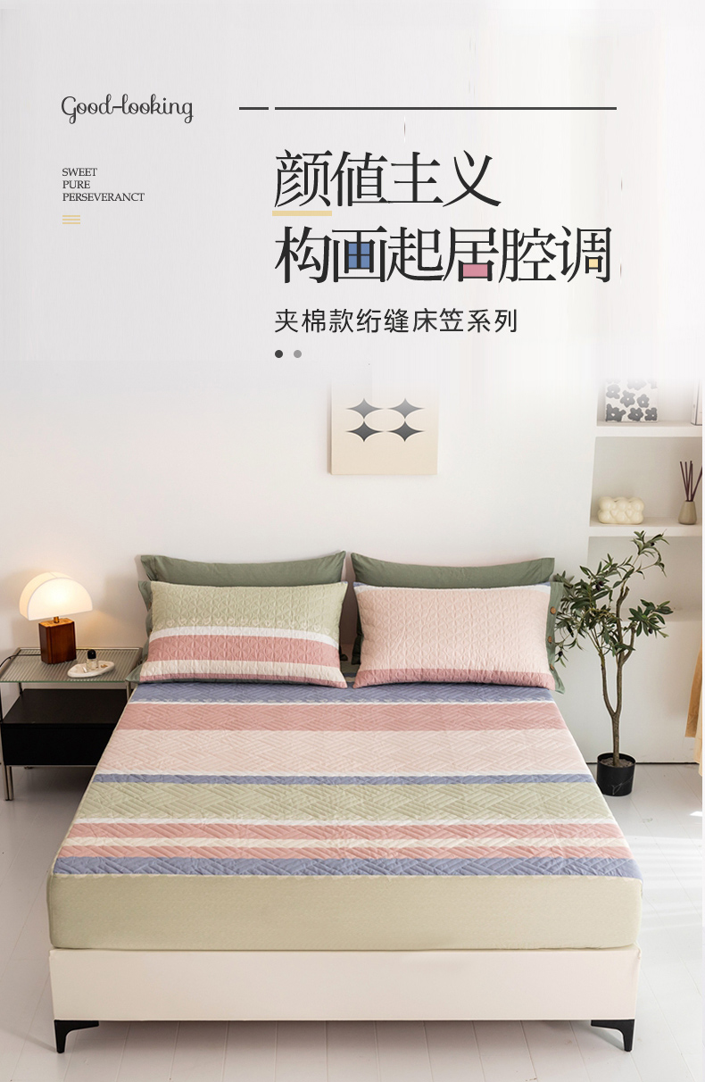 • 91家纺网 家纺一手货源 找家纺 优乐家纺 2023新款夹棉绗缝套件及单品系列-单床笠 莫卡