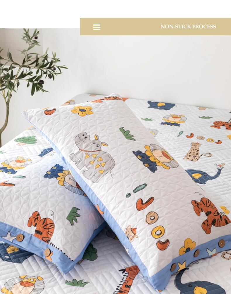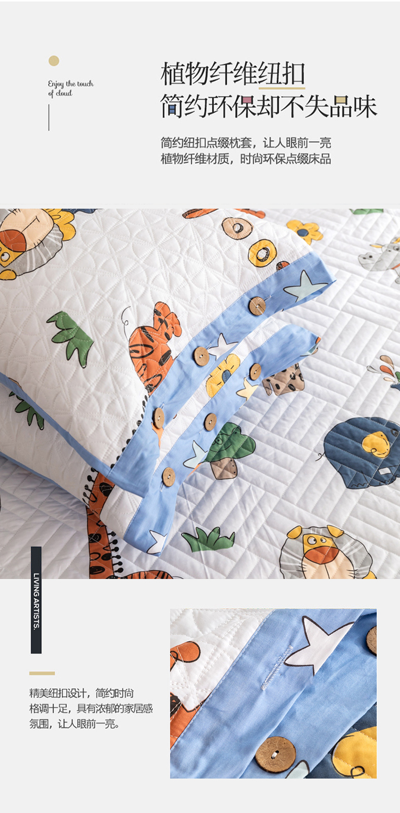 优乐家纺 2025新款纯棉印花夹棉系列床盖三件套-纽扣款新狂欢乐园,新狂欢乐园