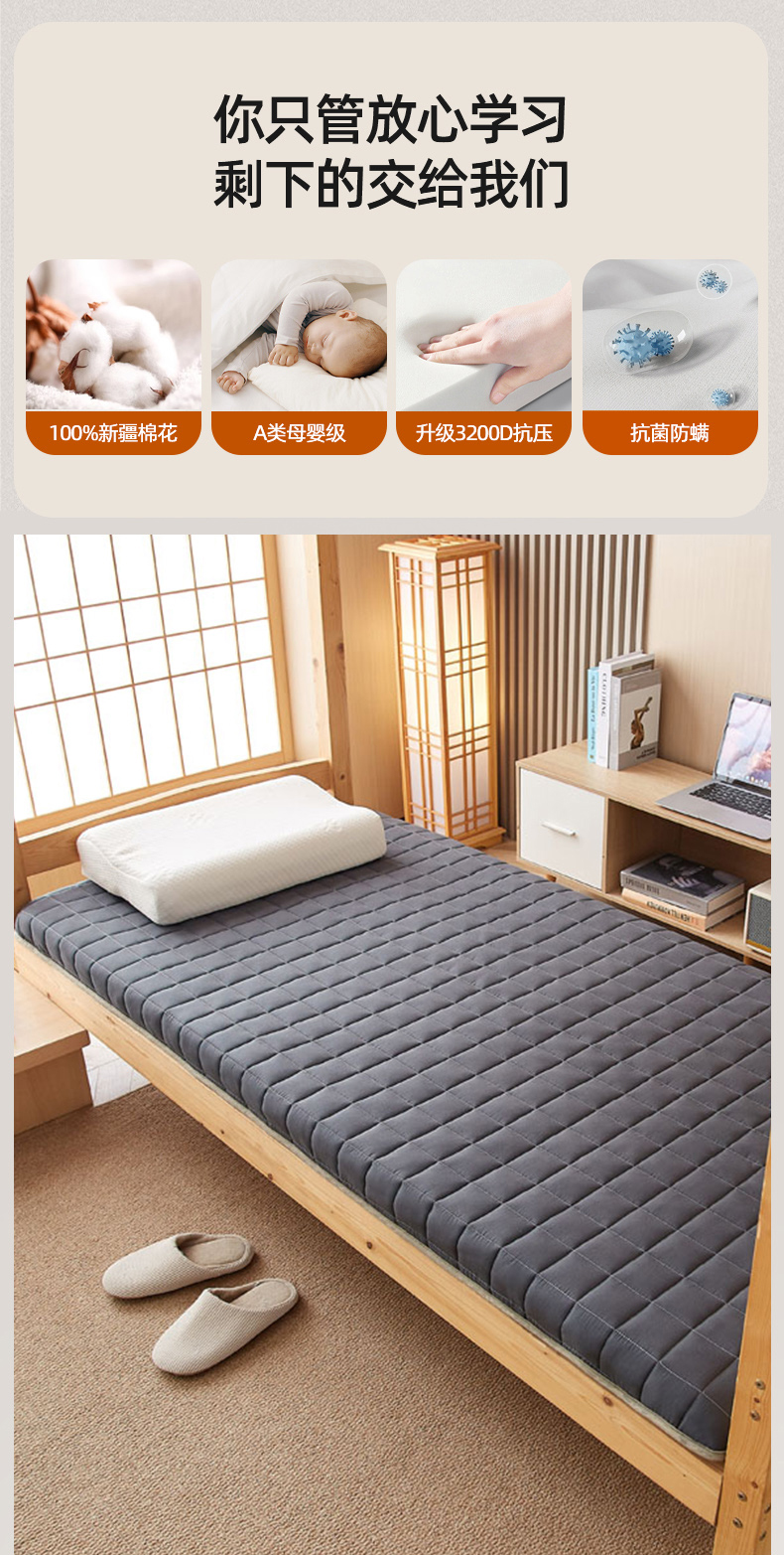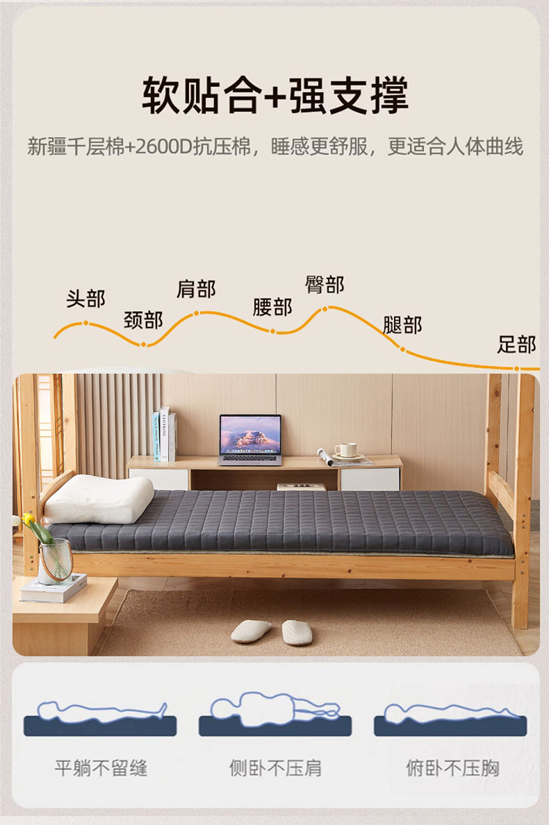商品名称:暖季家纺 2025新款无印风棉花款学生床垫 深灰