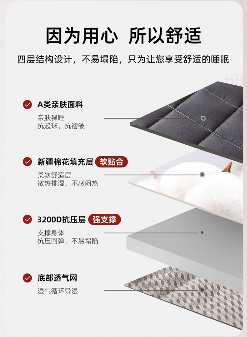 (总)暖季家纺 2025新款零压深睡眠学生记忆棉针织棉提花床垫,凌悦,清韵,云逸,素致