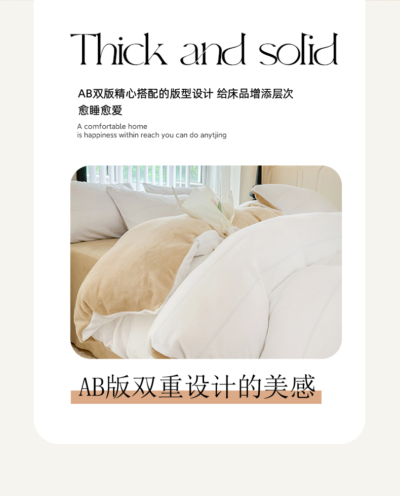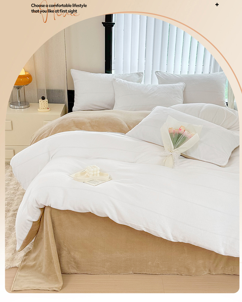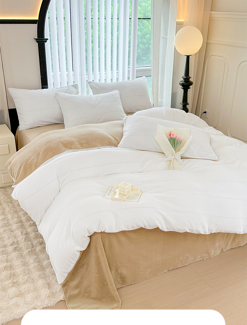 迷仙巢家纺 2023新款双拼牛奶绒四件套 白加卡其