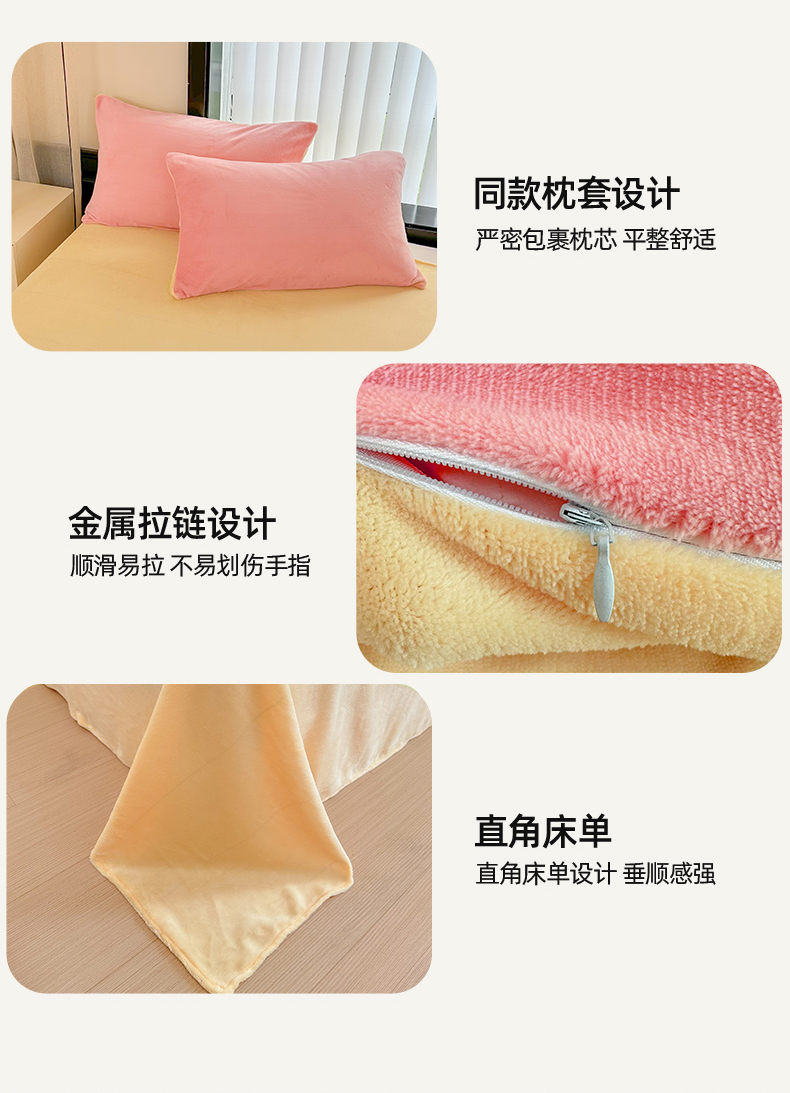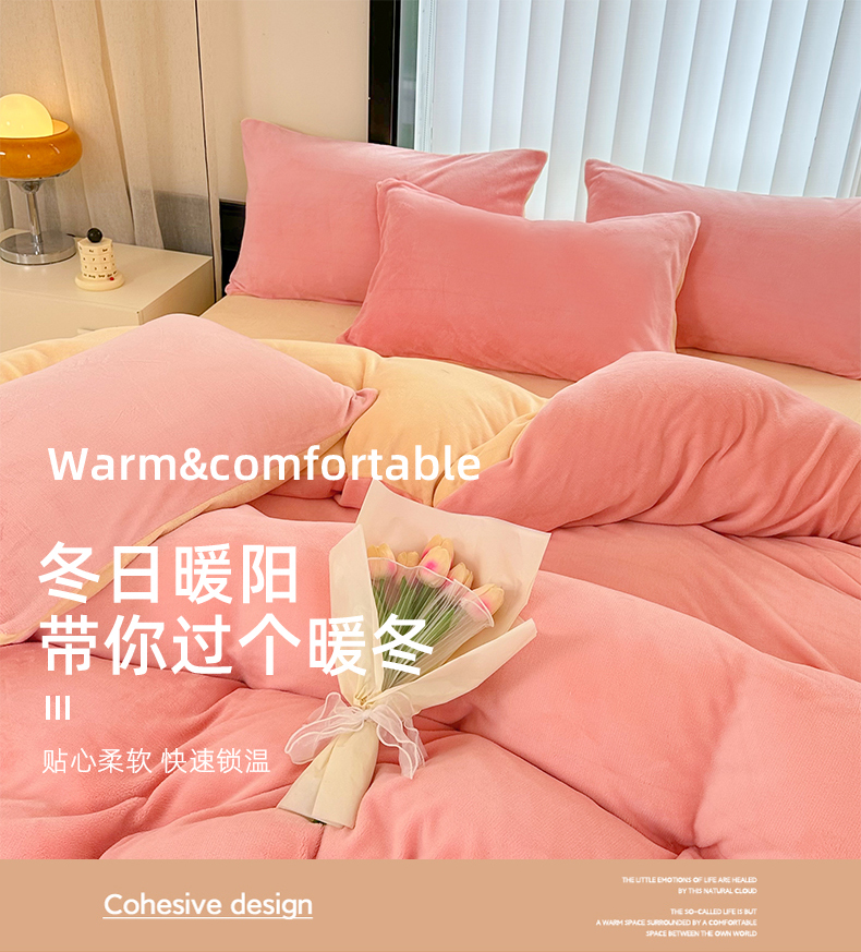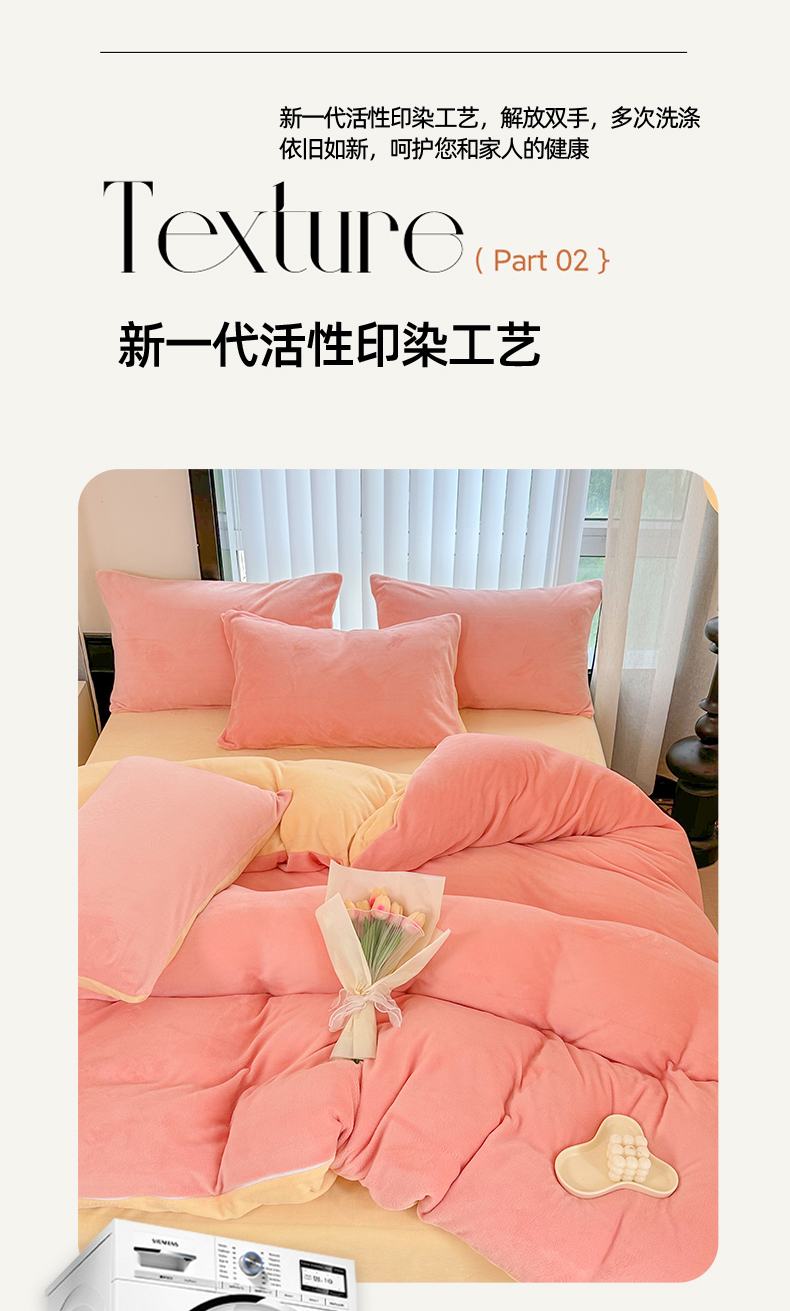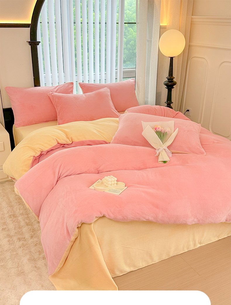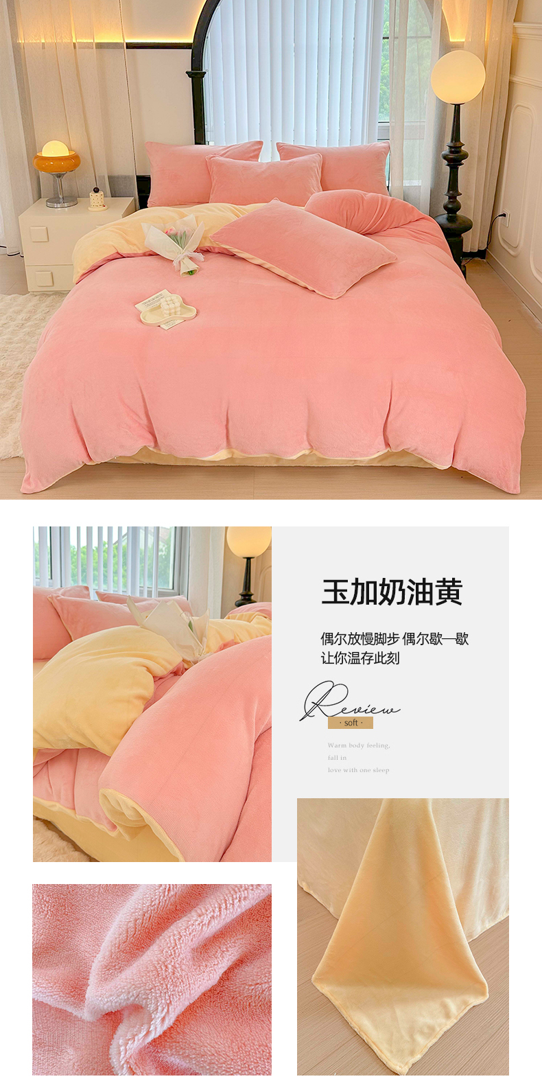 商品名称:迷仙巢家纺 2023新款双拼牛奶绒四件套 玉加奶油黄