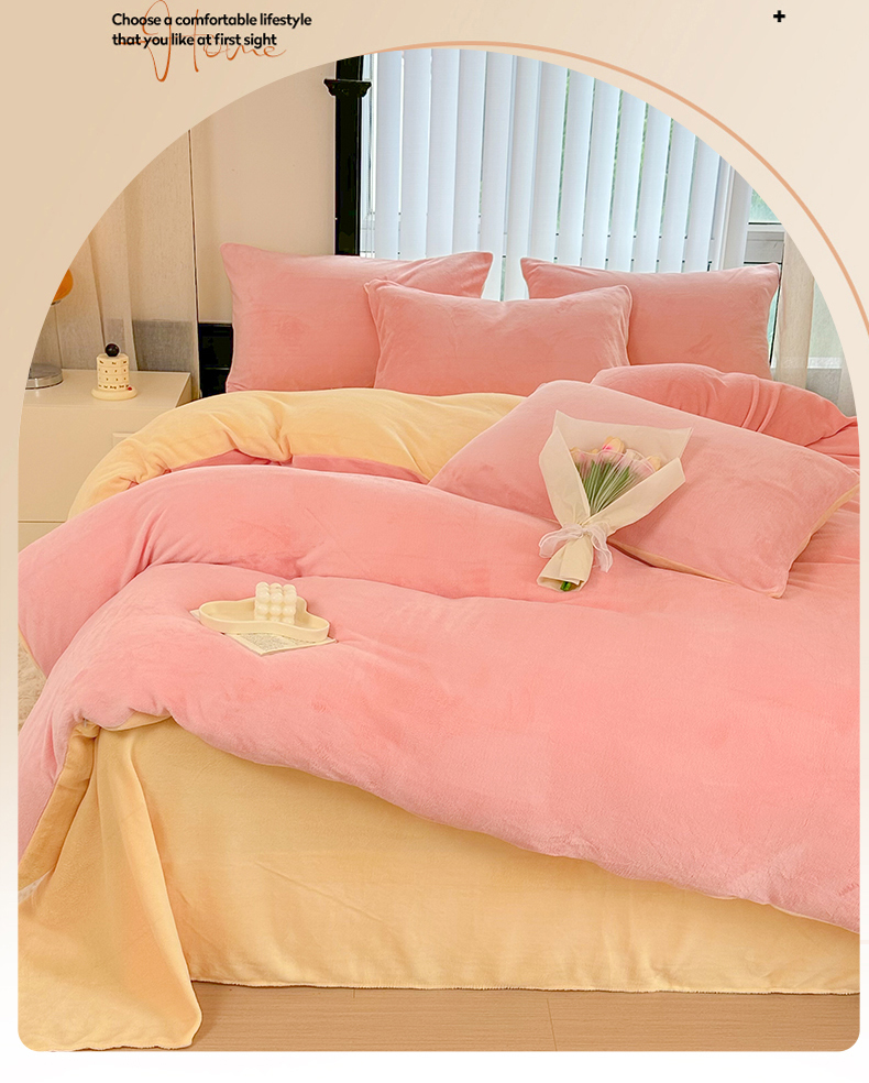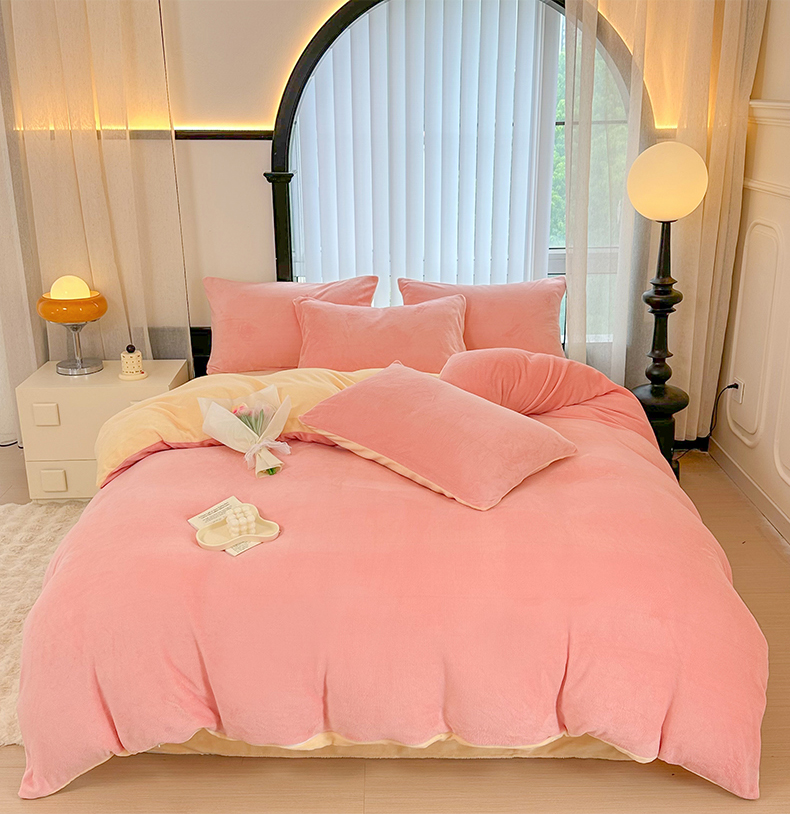迷仙巢家纺 2023新款双拼牛奶绒四件套 玉加奶油黄