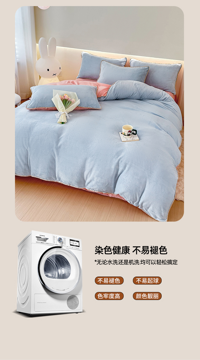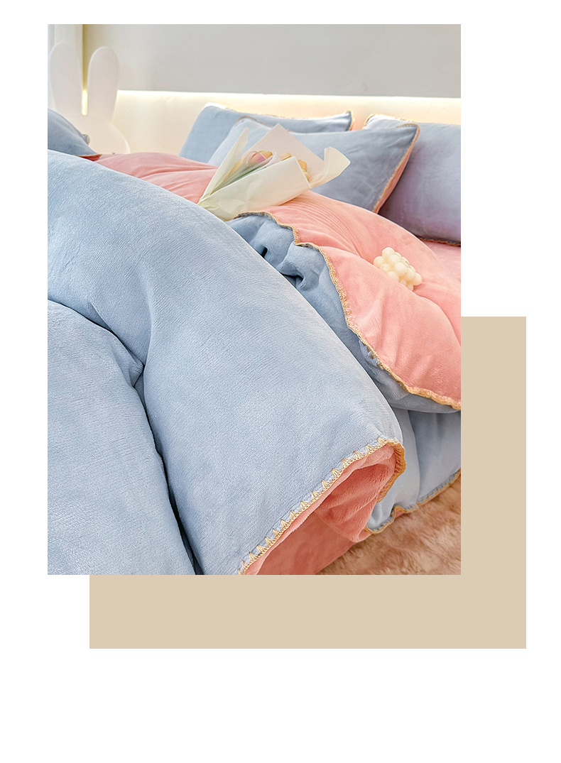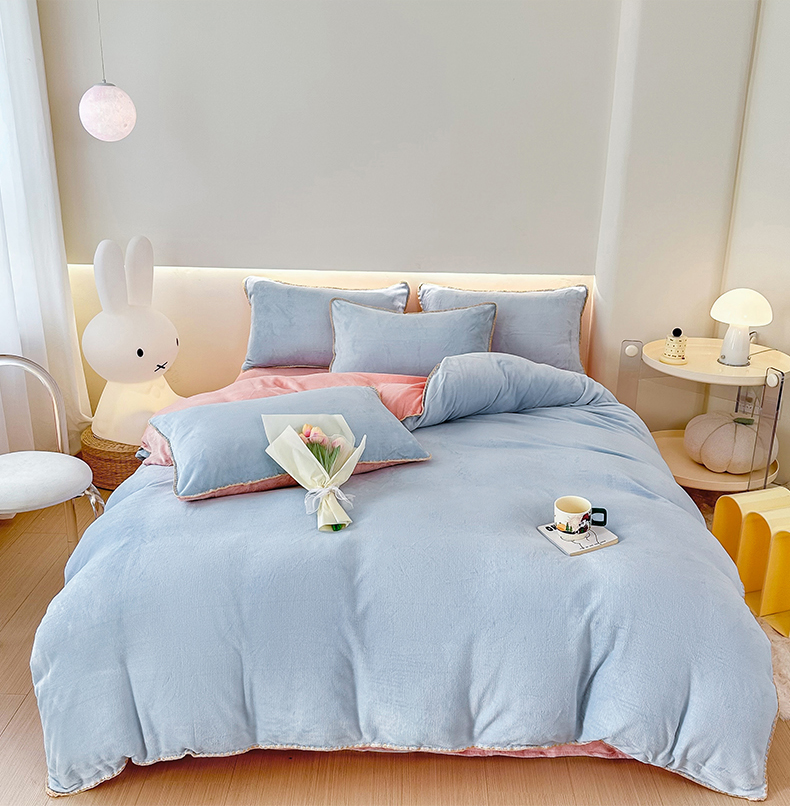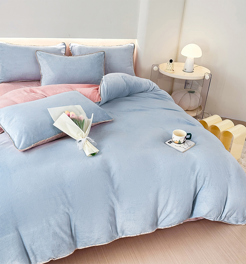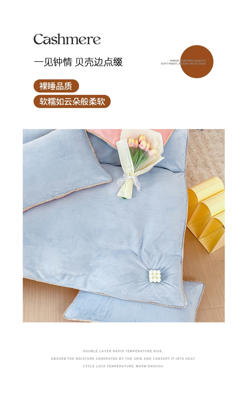 迷仙巢家纺 2023新款贝壳绒四件套 天空蓝加粉玉